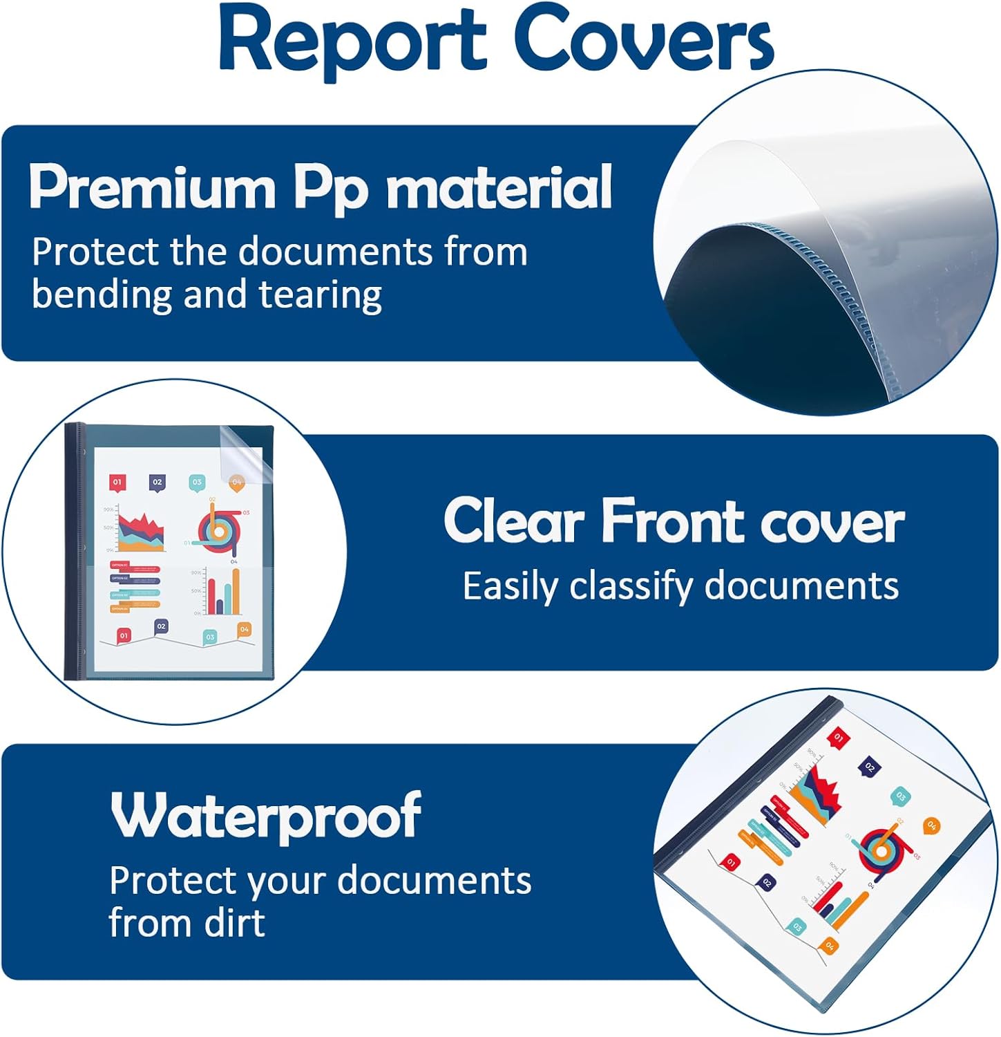 - Powerful Features: This clear folder keeps your documents safe and prevents spills or stains from ruining your hard work. Our report covers keep your documents dry and intact before submission. In addition to this, folders keep your documents organized, keeping your important documents in a safe and accessible place. The clear cover of our report features a three-prong buckle design, allowing you to quickly view the title page and easily sort.