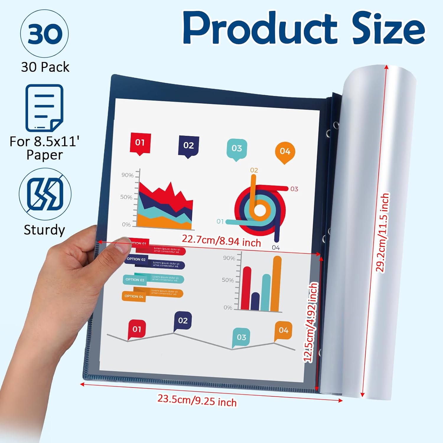 30 Pcs Clear Front Report Covers, Report Covers with 3-Prong Fasteners, Clear Front Presentation Folders for School Office Business, Navy Blue