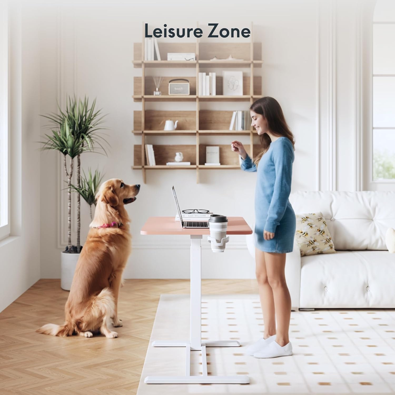 FLEXISPOT Mobile Standing Desk with Wheels Pneumatic Laptop Desk Rolling Computer Cart Movable Height Adjustable Small Sit Stand Computer Workstations Home Use(31.5" W x 17.7" D,Pink