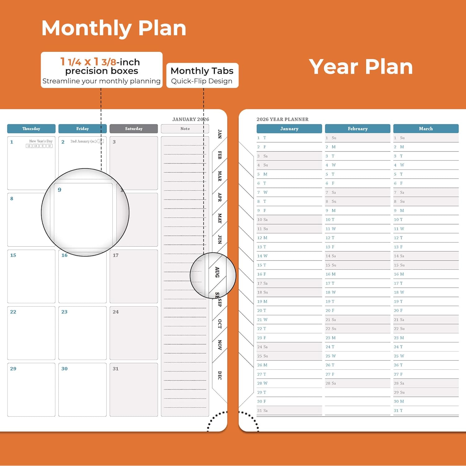 - Professional Grade Material for Your Daily Planner: Crafted with FSC 100GSM thick paper, this 2026 planner ensures good writing with markers while gentle on your eyes through its ivory white pages. The leather soft cover and lay flat binding make it a calendar planner companion for busy professionals, students, and families