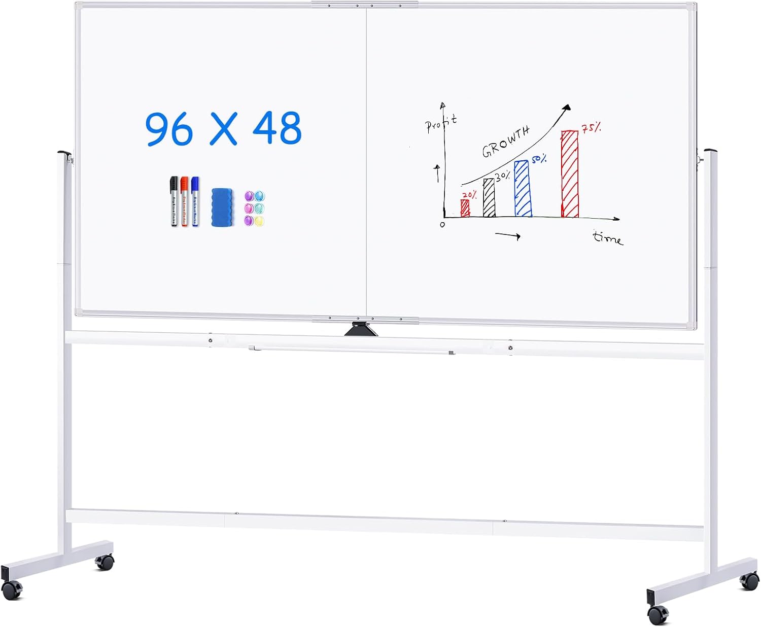 maxtek Rolling Whiteboard, 96x48 Large Double-Sided White Board Dry Erase on Wheels, Giant Magnetic White Board Standing for Office, School, Home Office, Homeschool