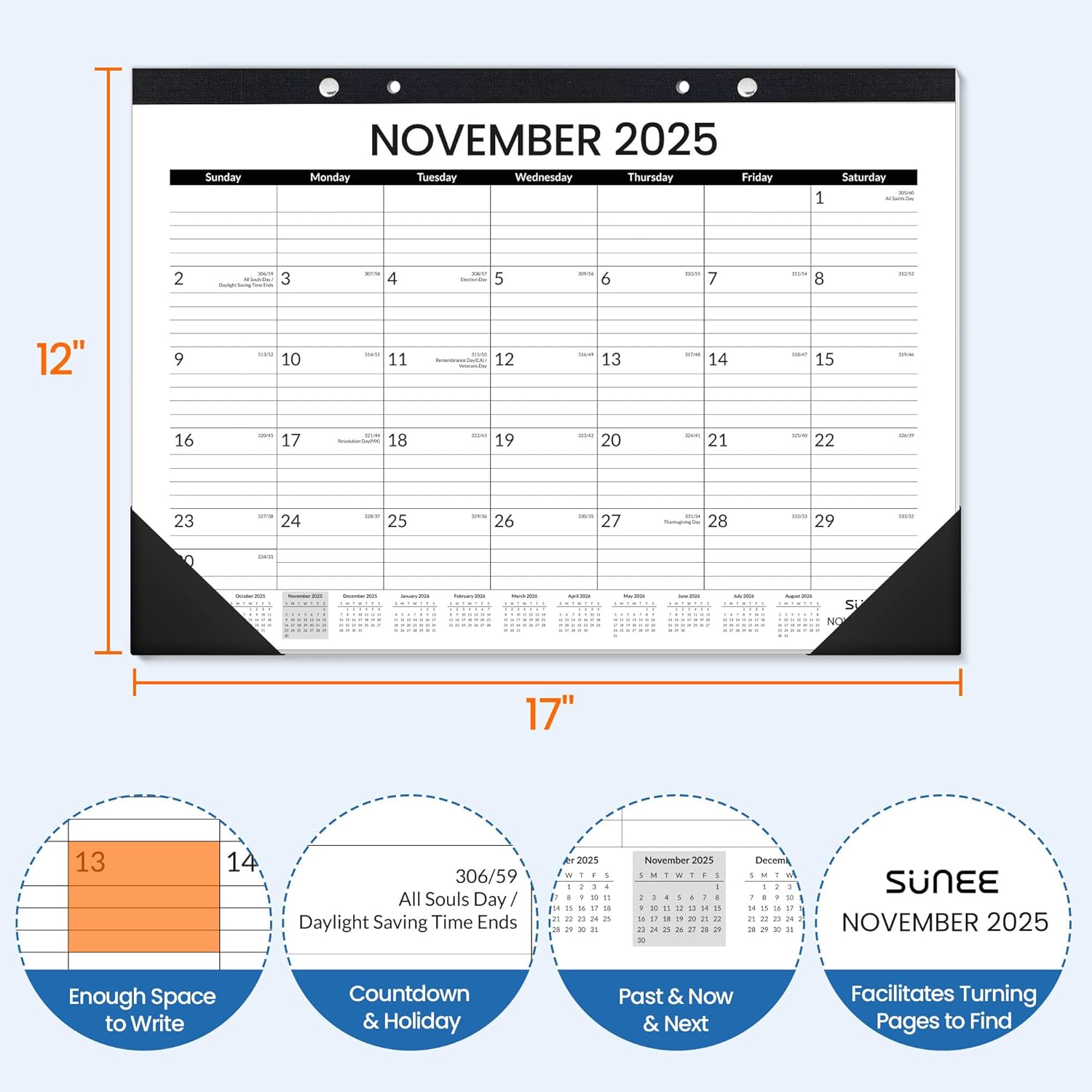 - Perfectly Sized: Measuring 17" x 12", the 2025-2026 desk calendar. The 2026 calendar also with The thoughtful layout offers ample space for tasks, appointments, and reminders, with neat grids ensuring your notes are organized and readable