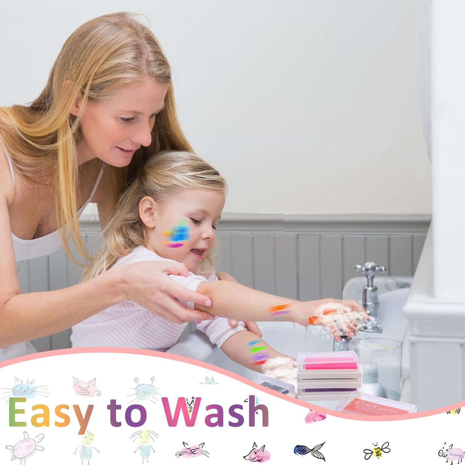 - 【Widely Used】The ink pads set provides a variety of ways to play, fingerprint painting, stamp painting, etc. can be used, suitable for DIY creation on paper, wood, scrapbooks, cards and other surfaces. The ink pad is a great gift for Kids