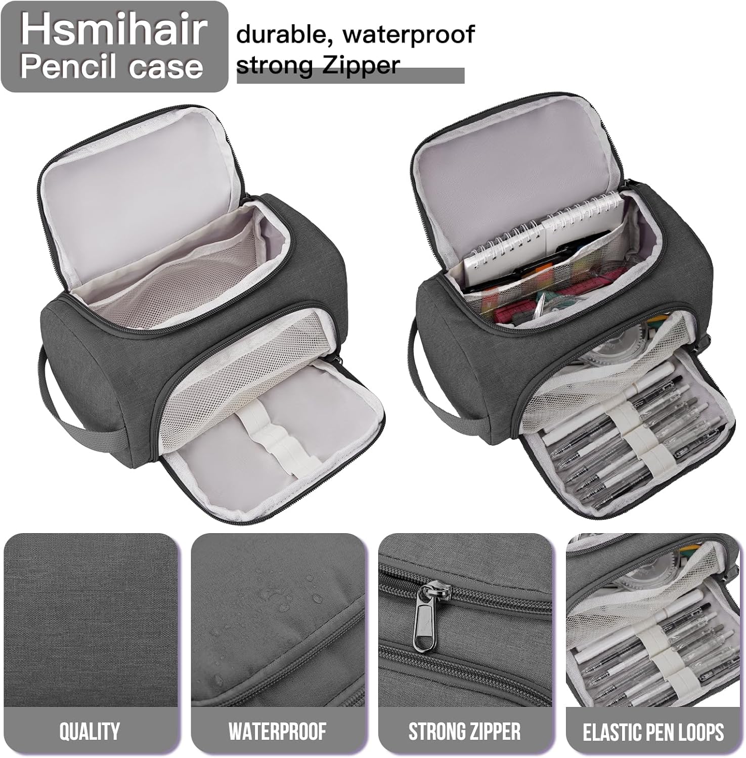 - 【Large Pencil Pouch】Large Storage pencil boxes sophisticated inner structure with elastic loop and multiple compartments, have the ability to store and organize up to 200 pens or pencils