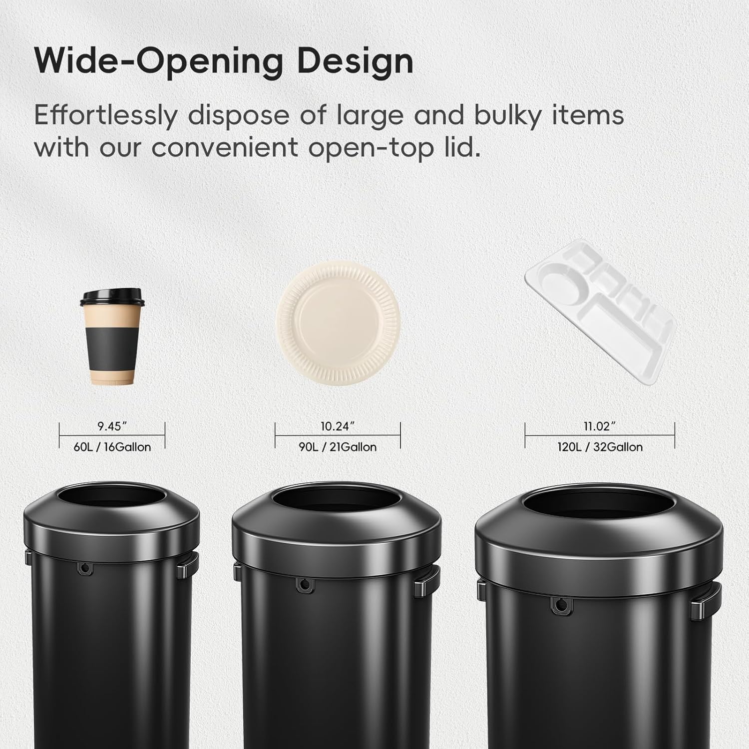 - EXTRA-LARGE CAPACITY: Perfect for high-traffic areas, our 32 Gallon/120 Liter open top trash can is ideal for businesses, hospitality, schools, healthcare facilities, and public spaces.