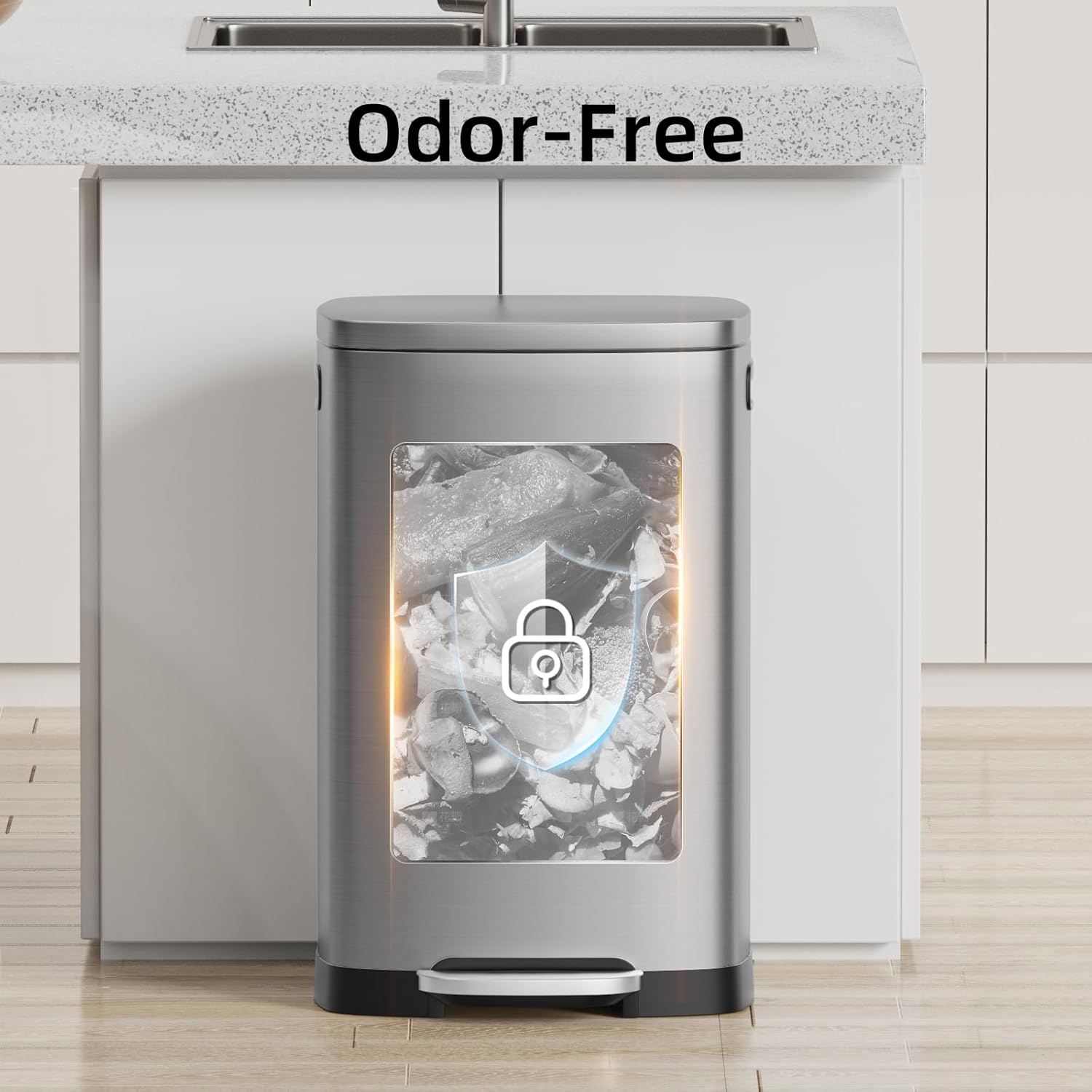 - đźš® Large Capacity & Odor Lock Technology: 50L (13 Gallon) extra-large capacity reduces frequent trash runs, perfect for busy kitchens. Sealed lid with odor-blocking design traps smells, keeping your space fresh and clean.