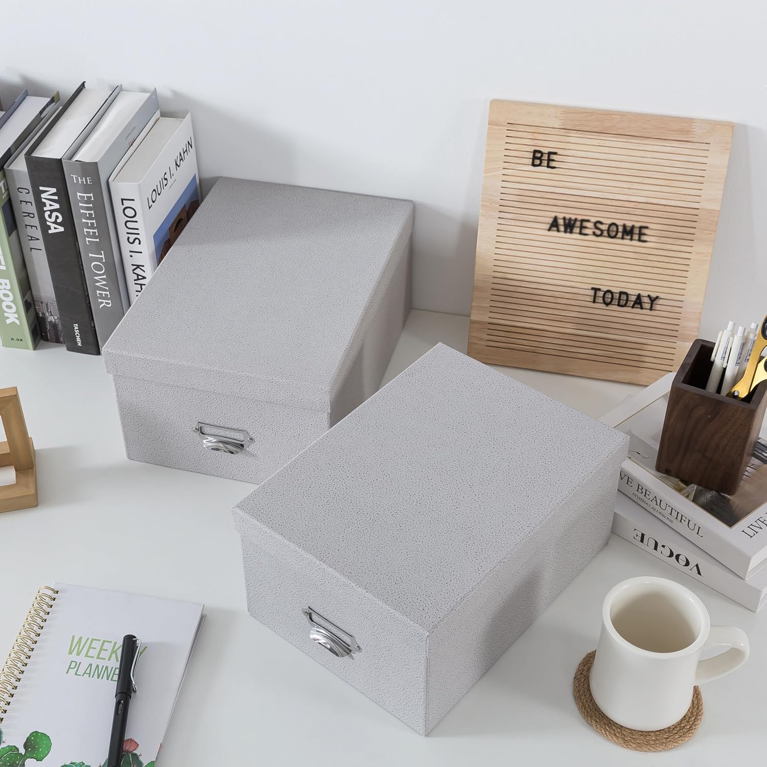 - PREMIUM KEEPSAKE STORAGE BOX: Each decorative storage box is crafted from durable paperboard with a textured finish. The subtle gray color complements any décor while the metal hardware adds vintage charm to these keepsake box organizers.