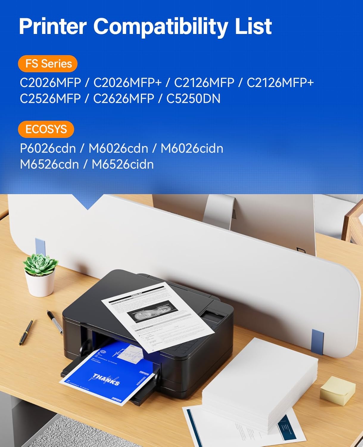 - Compatible Printer: Compatible for Kyocera FS-C2026MFP, C2026MFP+, C2126MFP, C2126MFP+, C2526MFP, C2626MFP, C5250DN, Kyocera ECOSYS P6026cdn, M6026cdn, M6026cidn, M6526cdn, M6526cidn Printer.