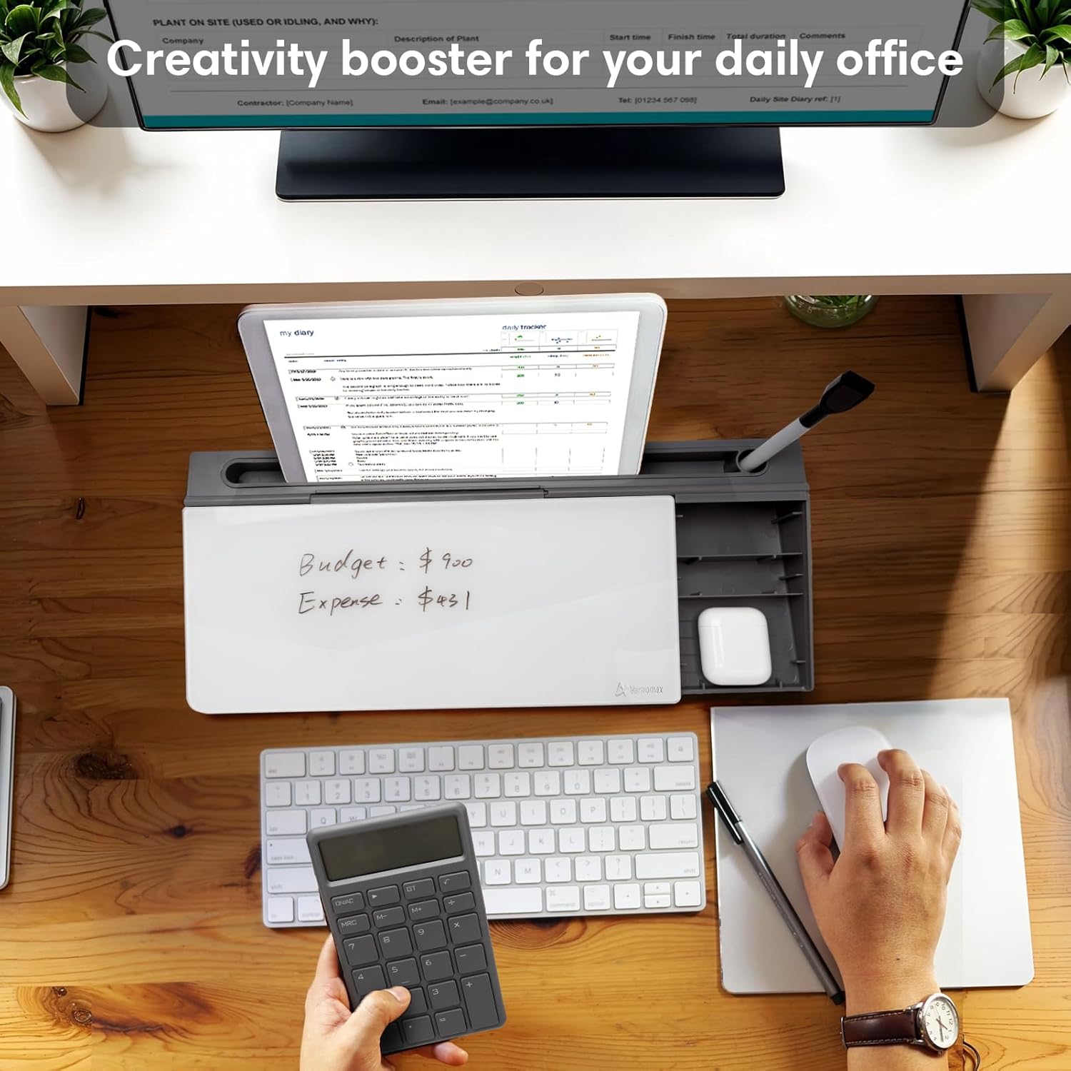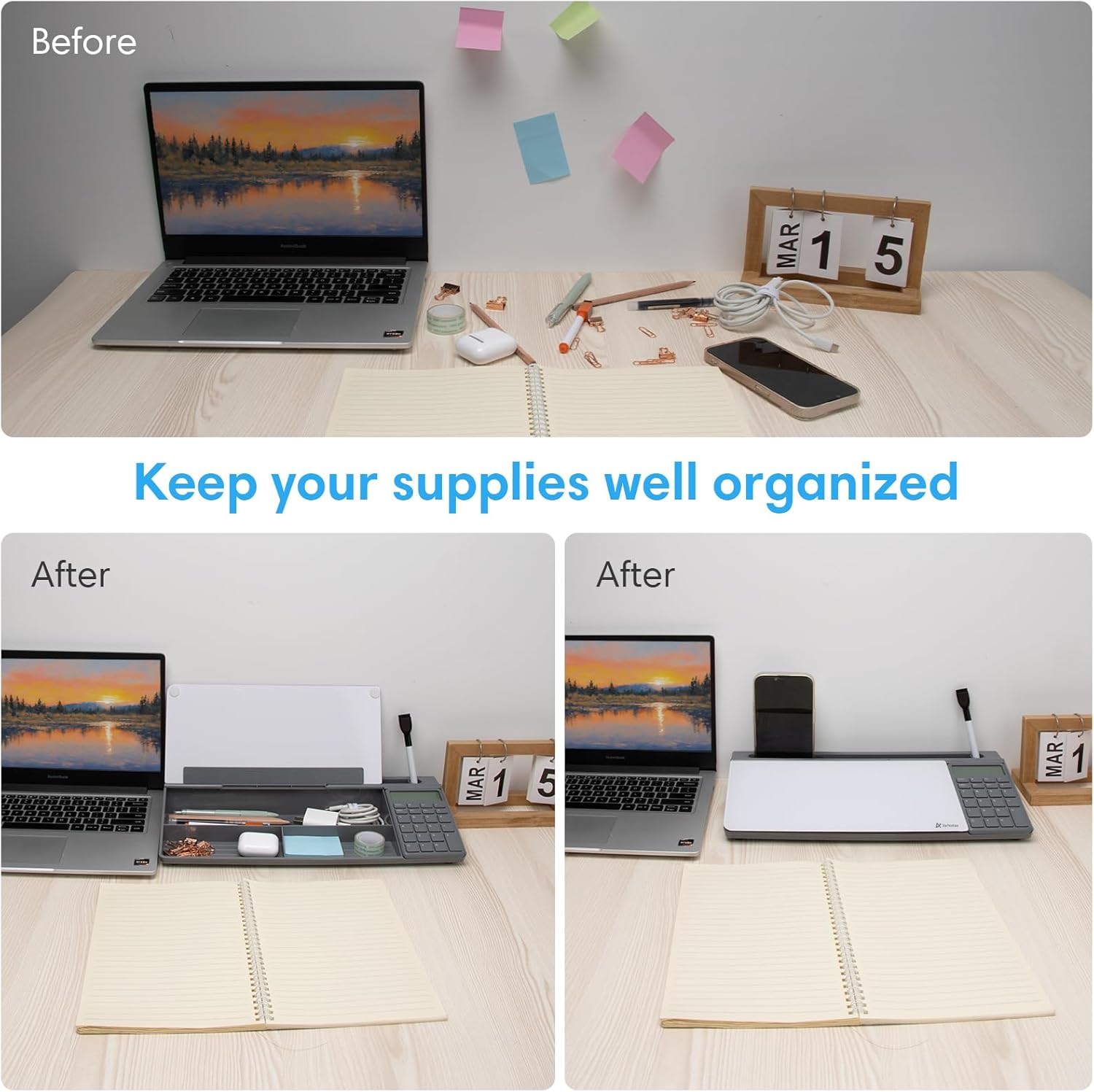 - Multi-functional Design: Sitting compactly between your monitor and keyboard, you can use it as a desk to do list whiteboard, or phone charger, or phone/tablet holder, or keyboard stand. It can used for your office task organization, family schedule and workout plan