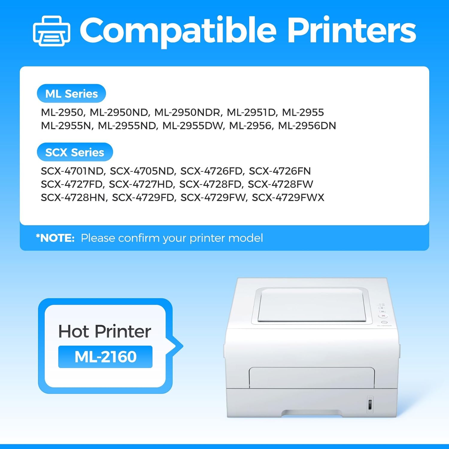 - Compatible Printer: Compatible with Samsung ML-2950, ML-2950ND, ML-2950NDR, ML-2951D, ML-2955, ML-2955N, ML-2955ND, ML-2955DW, ML-2956, ML-2956DN, SCX-4701ND, SCX-4705ND, SCX-4726FD, SCX-4726FN, SCX-4727FD, SCX-4727HD, SCX-4728FD, SCX-4728FW, SCX-4728HN, SCX-4729FD, SCX-4729FW, SCX-4729FWX Series Printers.