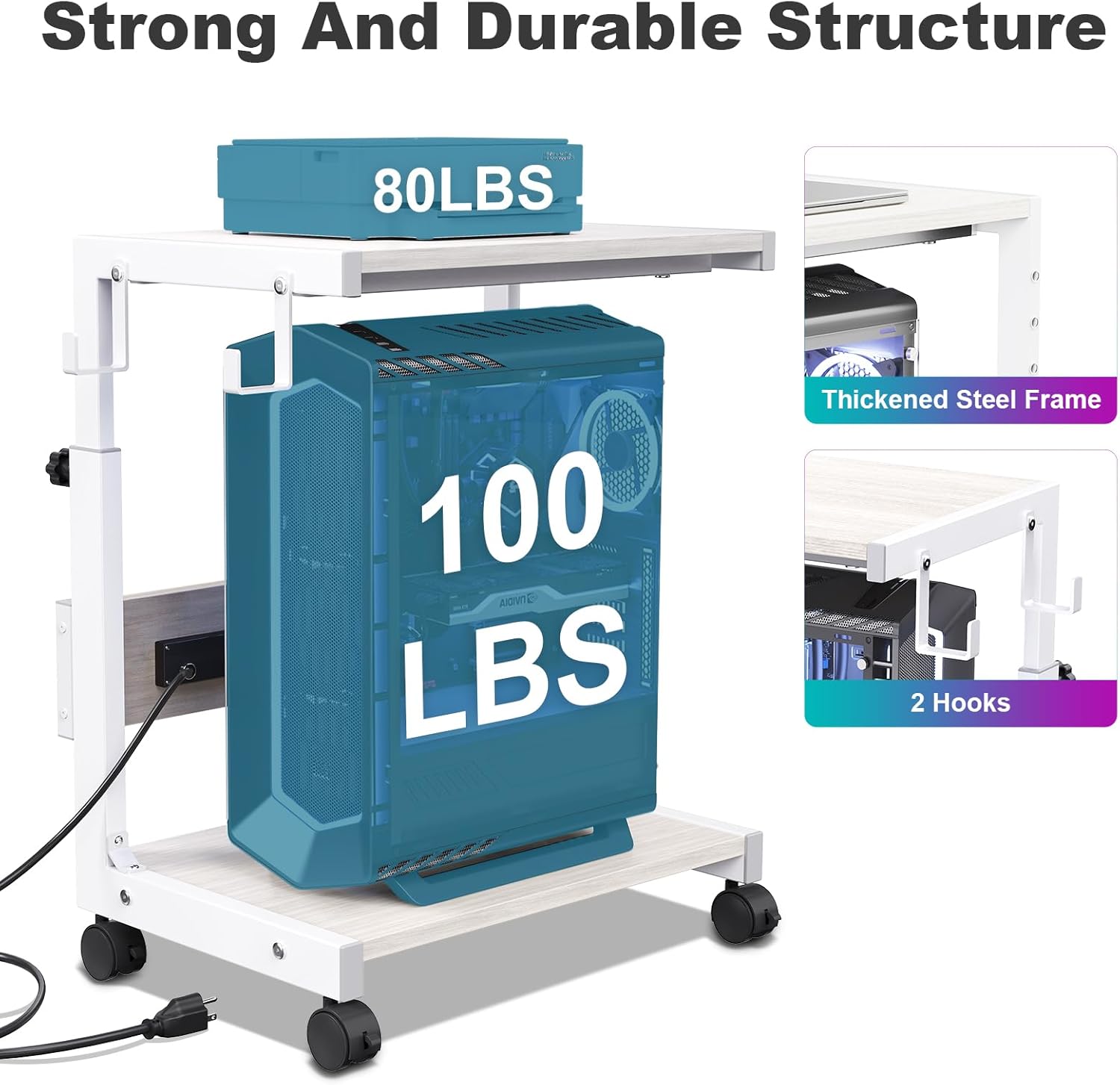 - Multifunctional Computer Tower Stand: Our 2 tier computer cpu stand meets most storage needs, the bottom tier stores pc towers, the top shelf can be used to store items such as printers, audio equipment, books, and documents