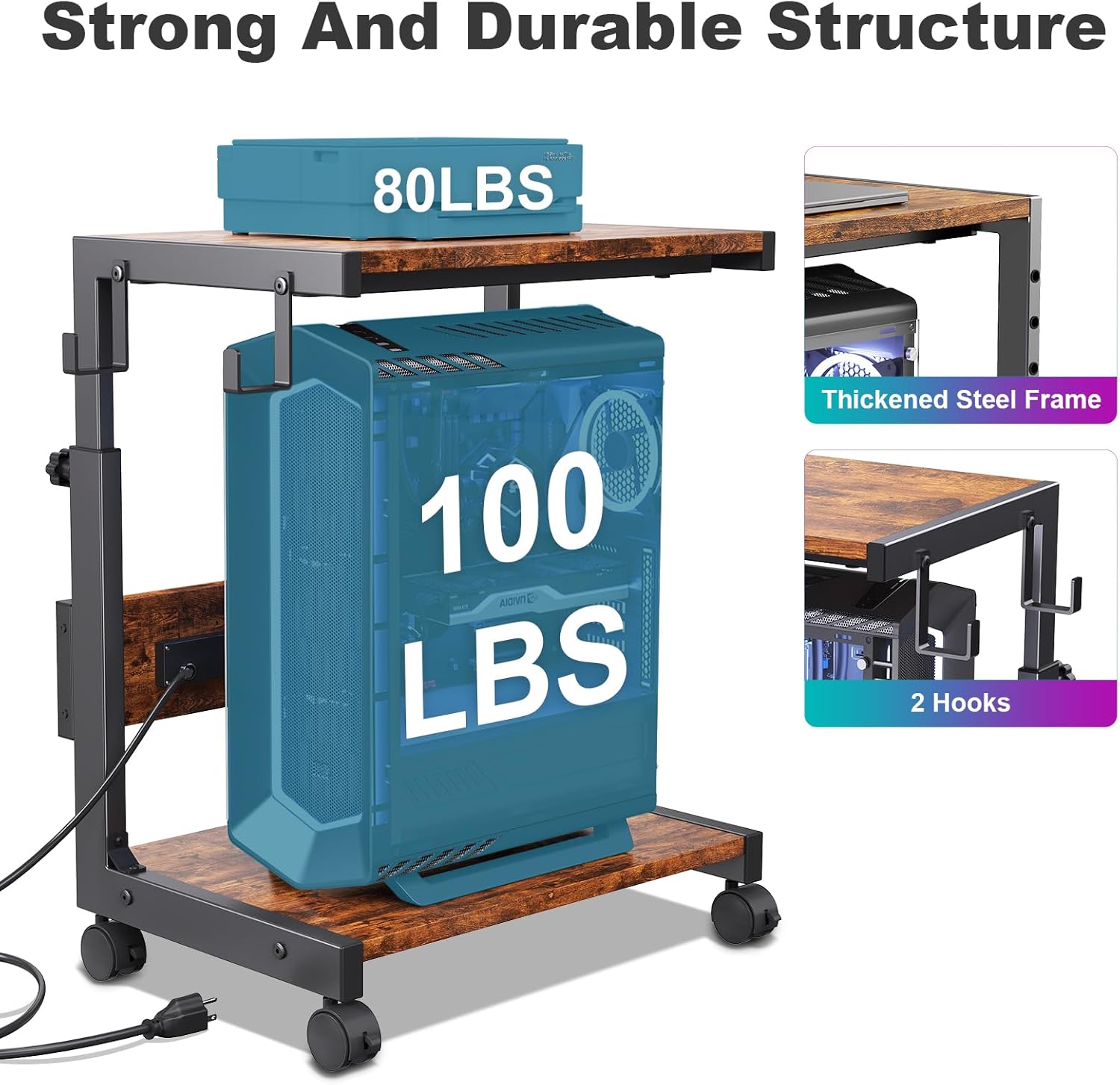 - Multifunctional Computer Tower Stand: Our 2 tier computer cpu stand meets most storage needs, the bottom tier stores pc towers, the top shelf can be used to store items such as printers, audio equipment, books, and documents