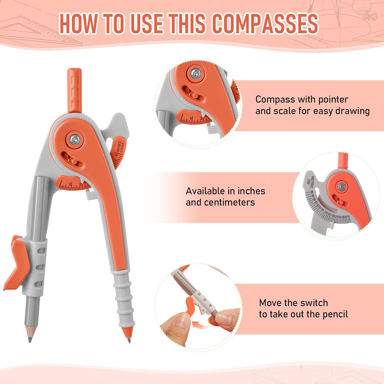 - Integrated compass package: compass comes with a clear box, contain 1 piece geometry compass, 1 box refill packaged in a transparent box, convenient for organized and carry