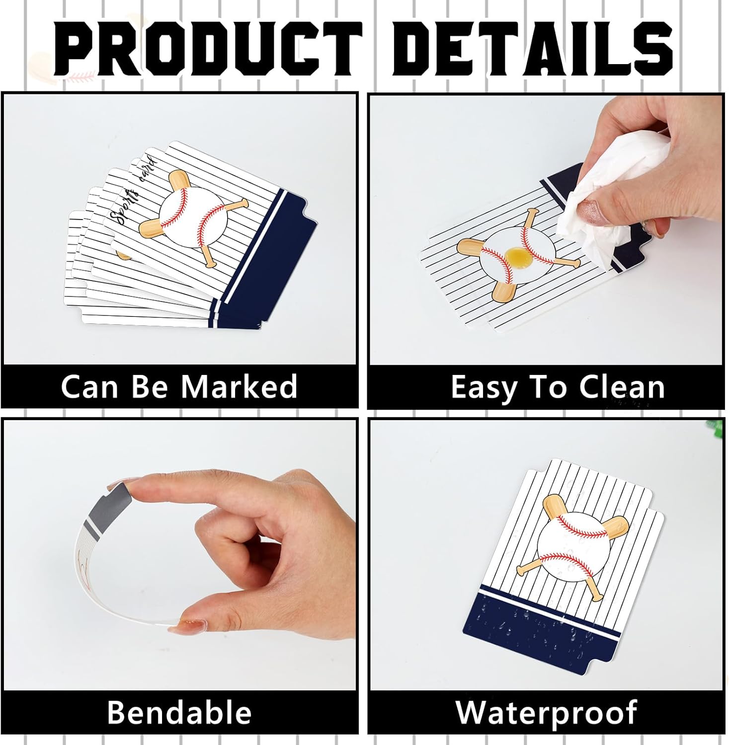 50pcs Baseball Team Card Dividers Plastic Index Card Storage Dividers with Tabs for Boys Men Gifts Card Separators for Organizing Sports Recipe Game Card
