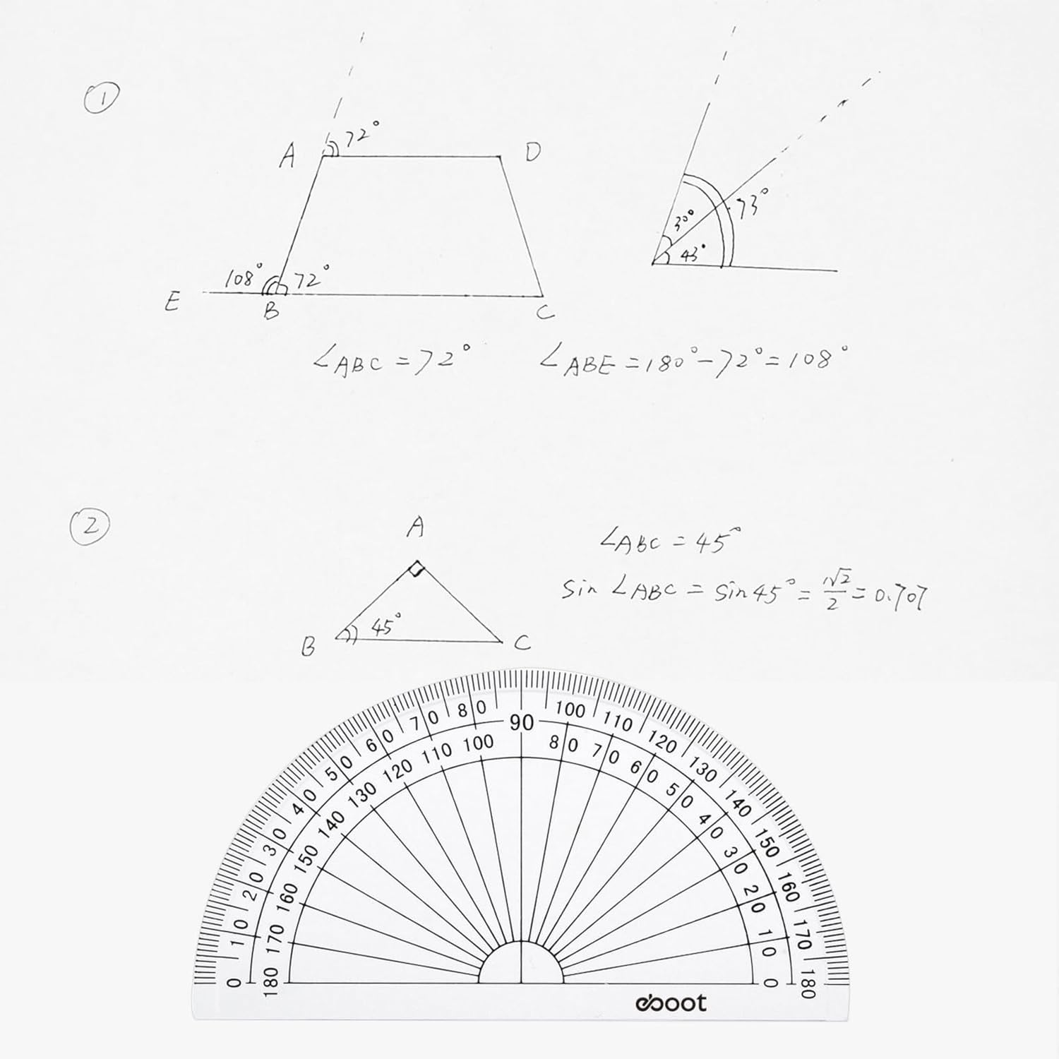 - Common Protractor: the plastic protractors are the common shape protractor, it's universal, you can applied to settle the math problems frequently