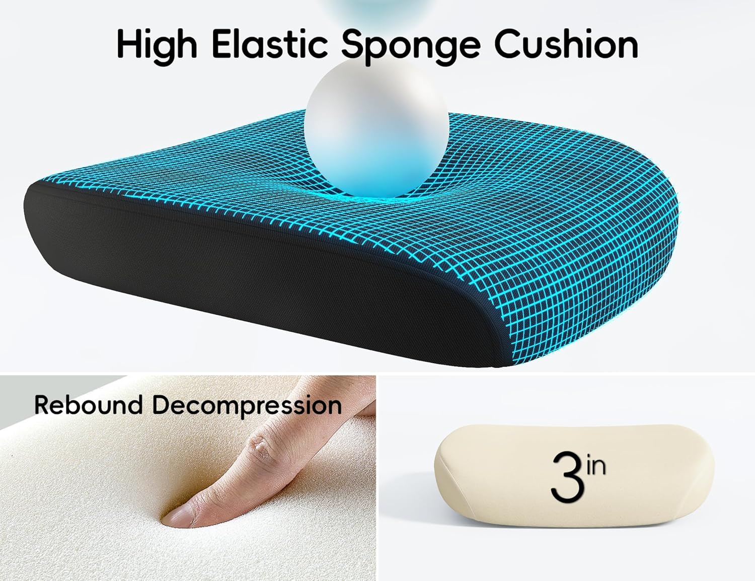 - Extra-Thick Cushion for Pressure-Free Sitting:Hard chairs ruin your focus—ours keeps you comfy! The premium high-density foam seat is thicker and more resilient than standard pads, evenly distributing weight to prevent hip and leg numbness. Sit longer, stay productive, and forget about discomfort.