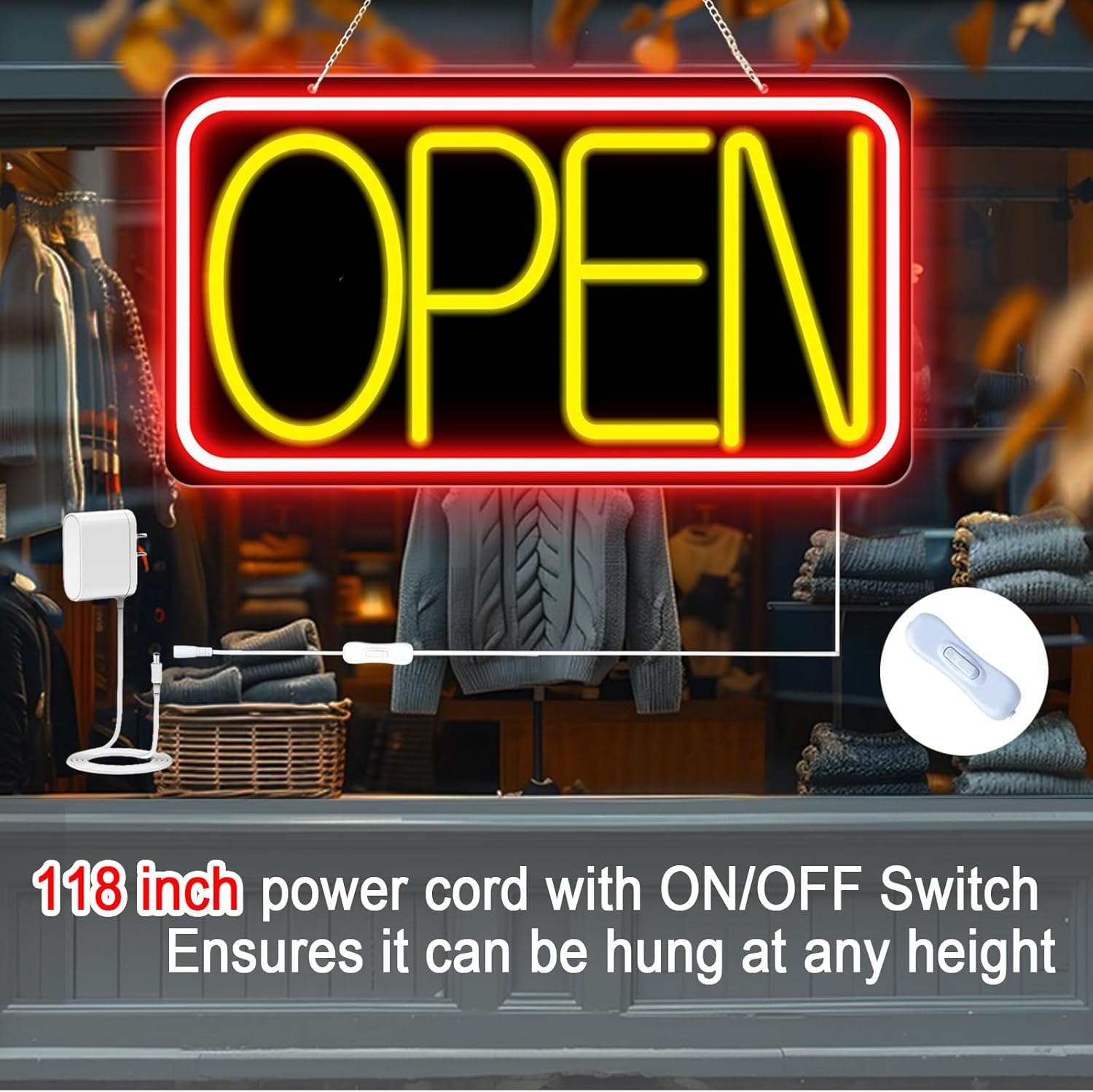 16.5" X 9" Led Neon Open Signs for Business Ultra Bright Plug In Electric Light Up Open Signs with ON/OFF Switch and 12V/2A AC Adapter for Storefront Window Bar Salon Coffee Stores (Red/Yellow)