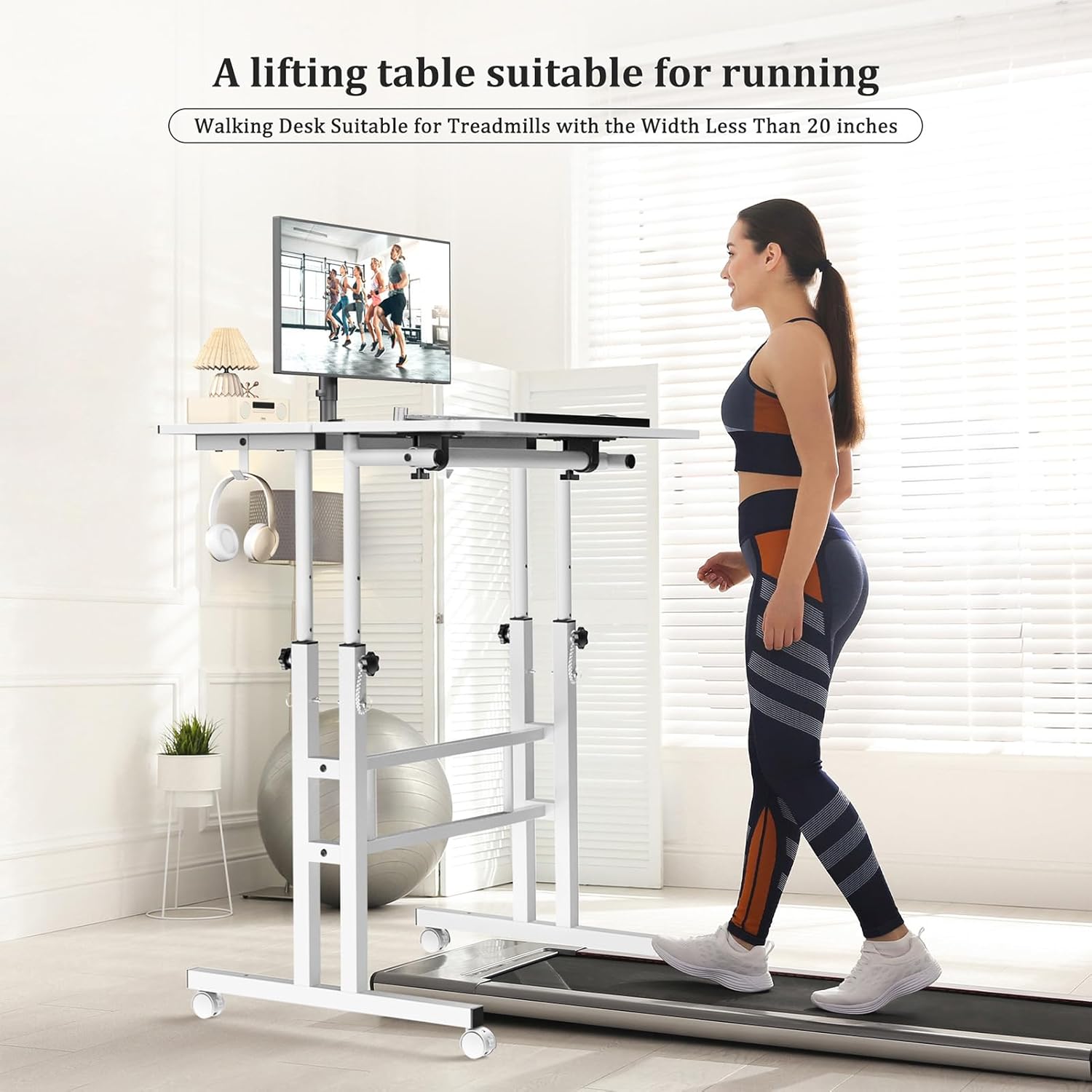 Small Standing Desk with Wheels, Mobile Stand Up Desk, Portable Standing Table on Wheels for Walking Pad, Rolling Computer Desk Adjustable Height, Tall Table