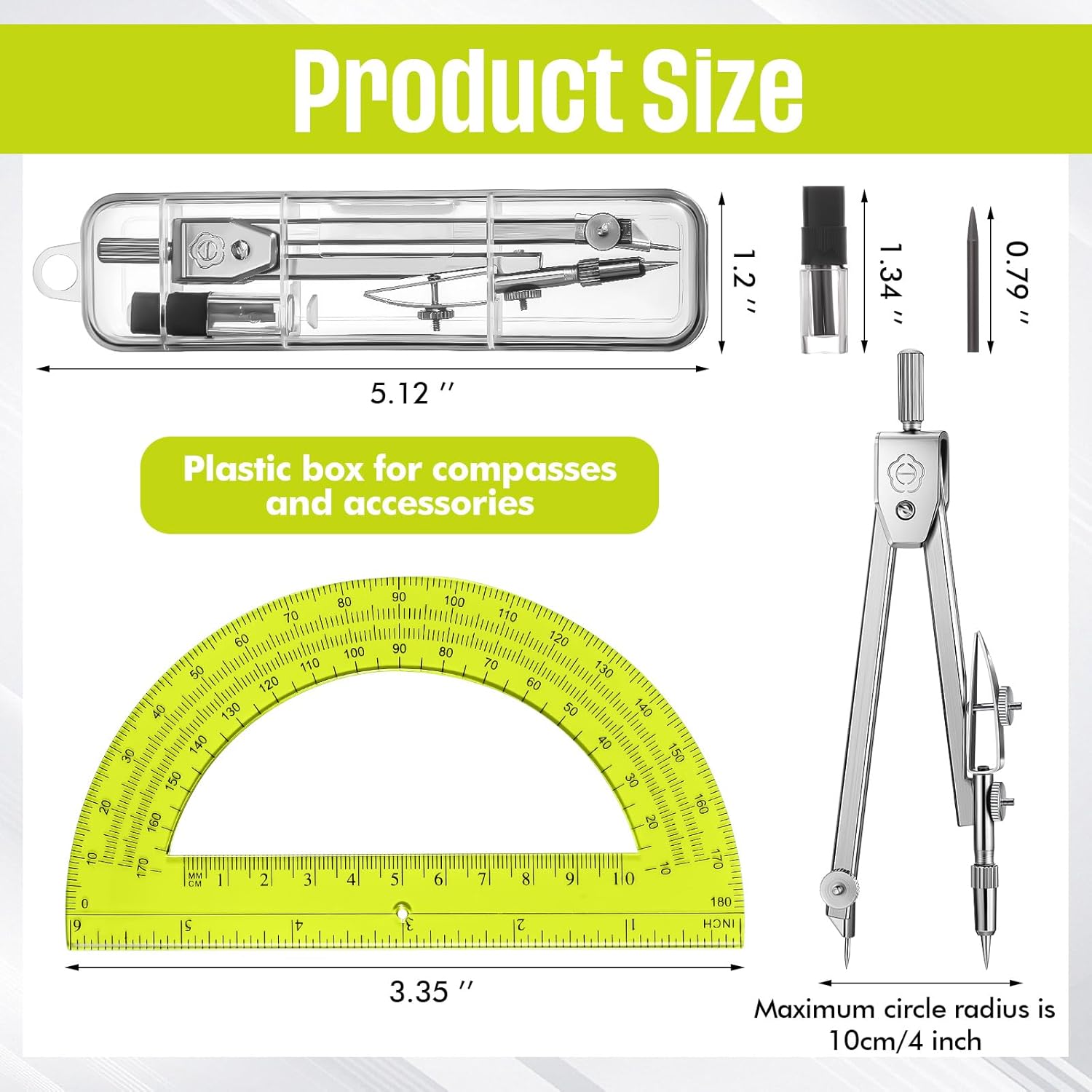 - Integrated compass package: compass comes with a clear box, contain 1 piece geometry compass and 1 box refill packaged in a transparent box, convenient for organized and carry