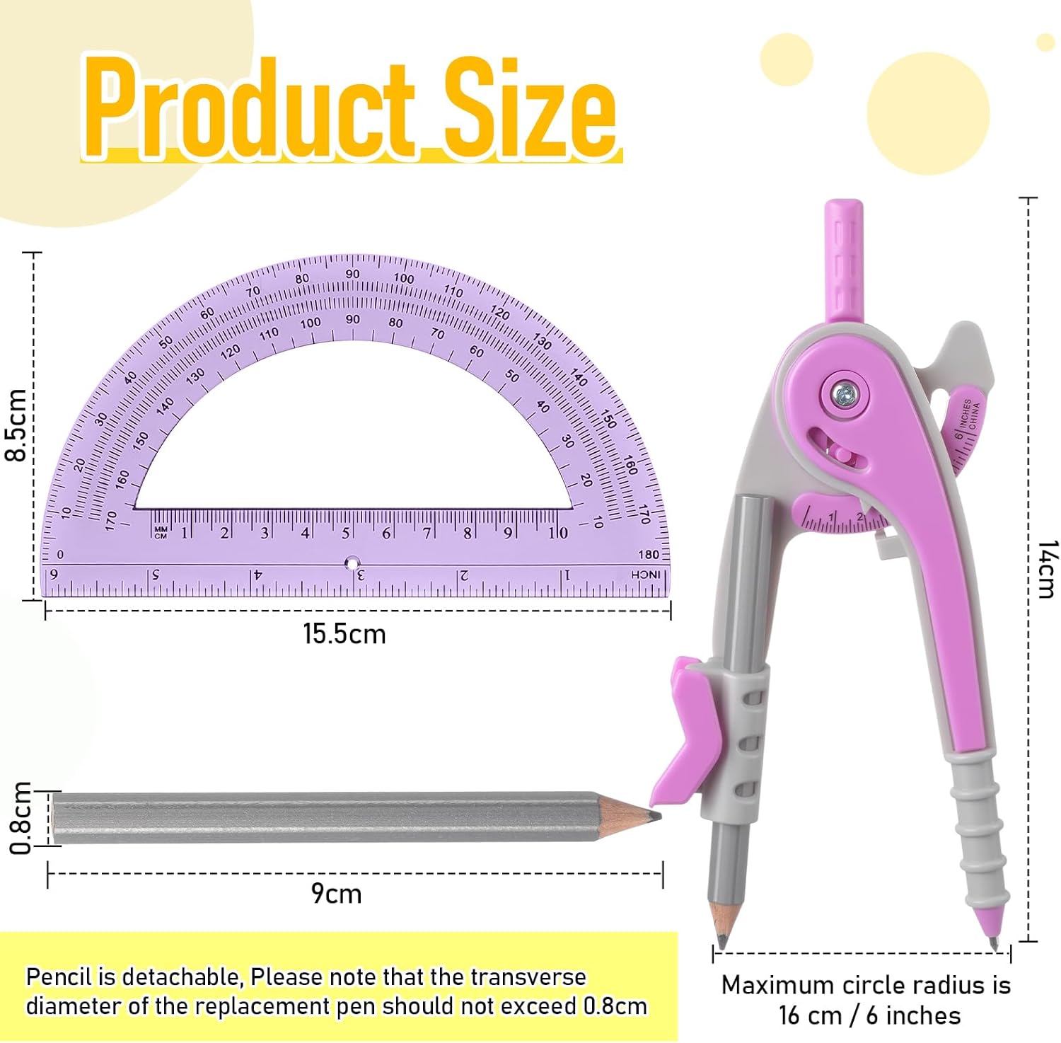 - Reliable Material: these math compasses for geometry are made of tough ABS plastic, safe and lightweight, ensuring they will withstand daily use and last for a long time; The sturdy construction also ensures accurate measurements and precise drawing every time, making them an ideal choice for geometry and math lessons