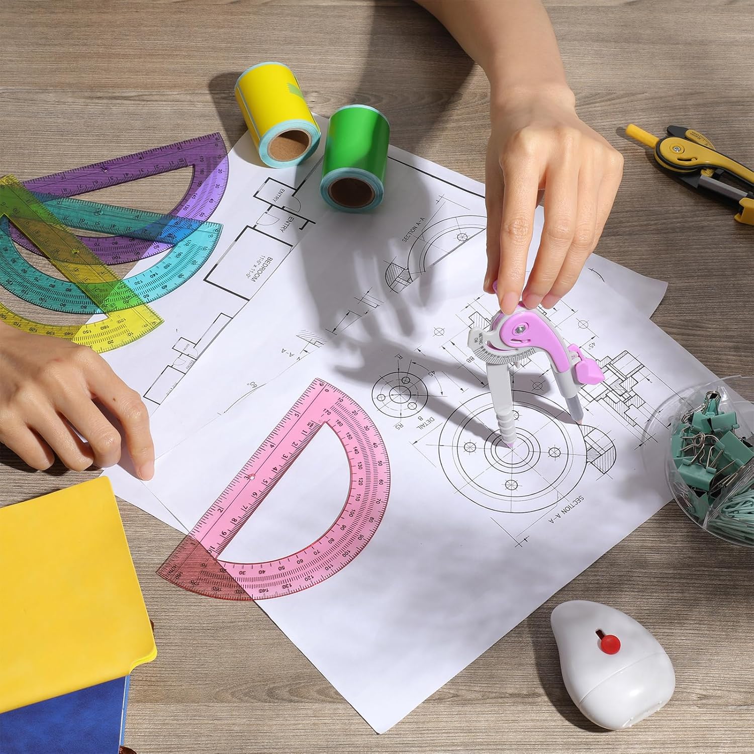 - 12 Compass and Protractor Set: Compasses and protractors are suitable for drawing circles and measuring angles, including six colors of red, pink, yellow, blue, green, and purple, with bright color combinations, the compass comes with round corner design on compass needle, safe and reliable to use without worrying about scratching, suitable for students, teachers, engineers, designers, artists, etc