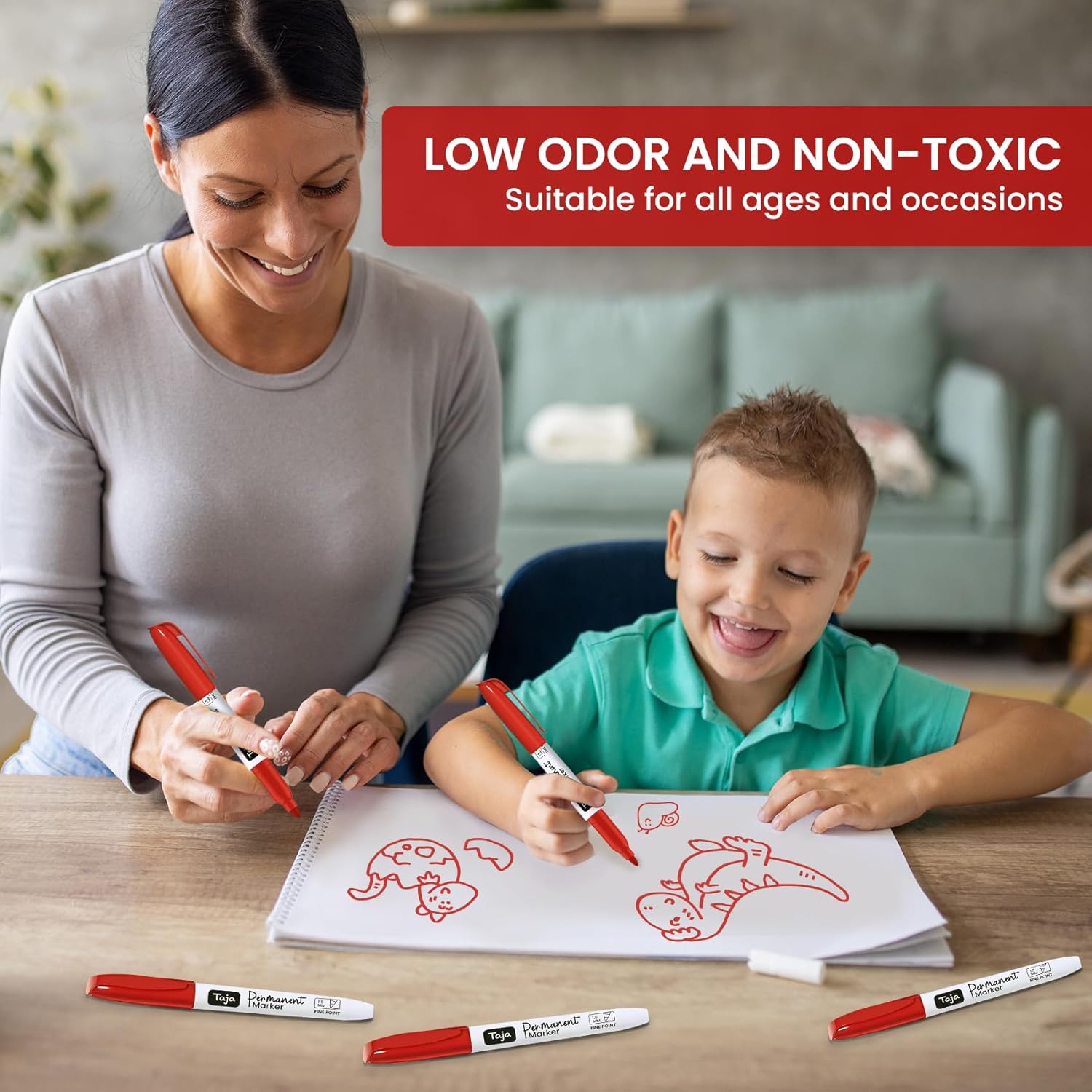 Permanent Markers Fine Tip, 30 Pack Red Quick-Drying and Fade-Resistant Permanent Markers Bulk Set for Writing and Drawing on Wood, Plastic, Metal, Glass, Stone, Ideal for Office School Supplies