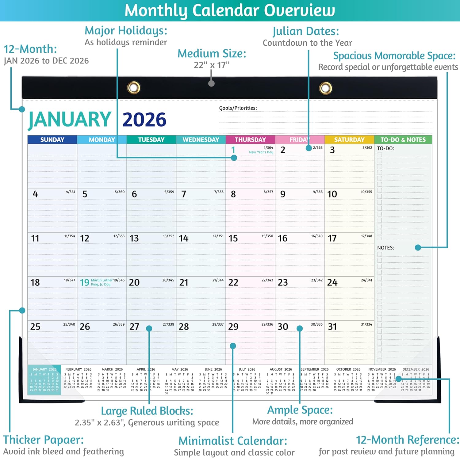 2026 Desk Calendar ā Large Desk Calendar 2026, 22'' x 17'', Jan 2026 ā Dec 2026, 2026 Desk/Wall Calendar with Desk Pad, To-do Lists, Ruled Blocks, Corner Protectors, Lay Flat ļ¼ Not Rolled