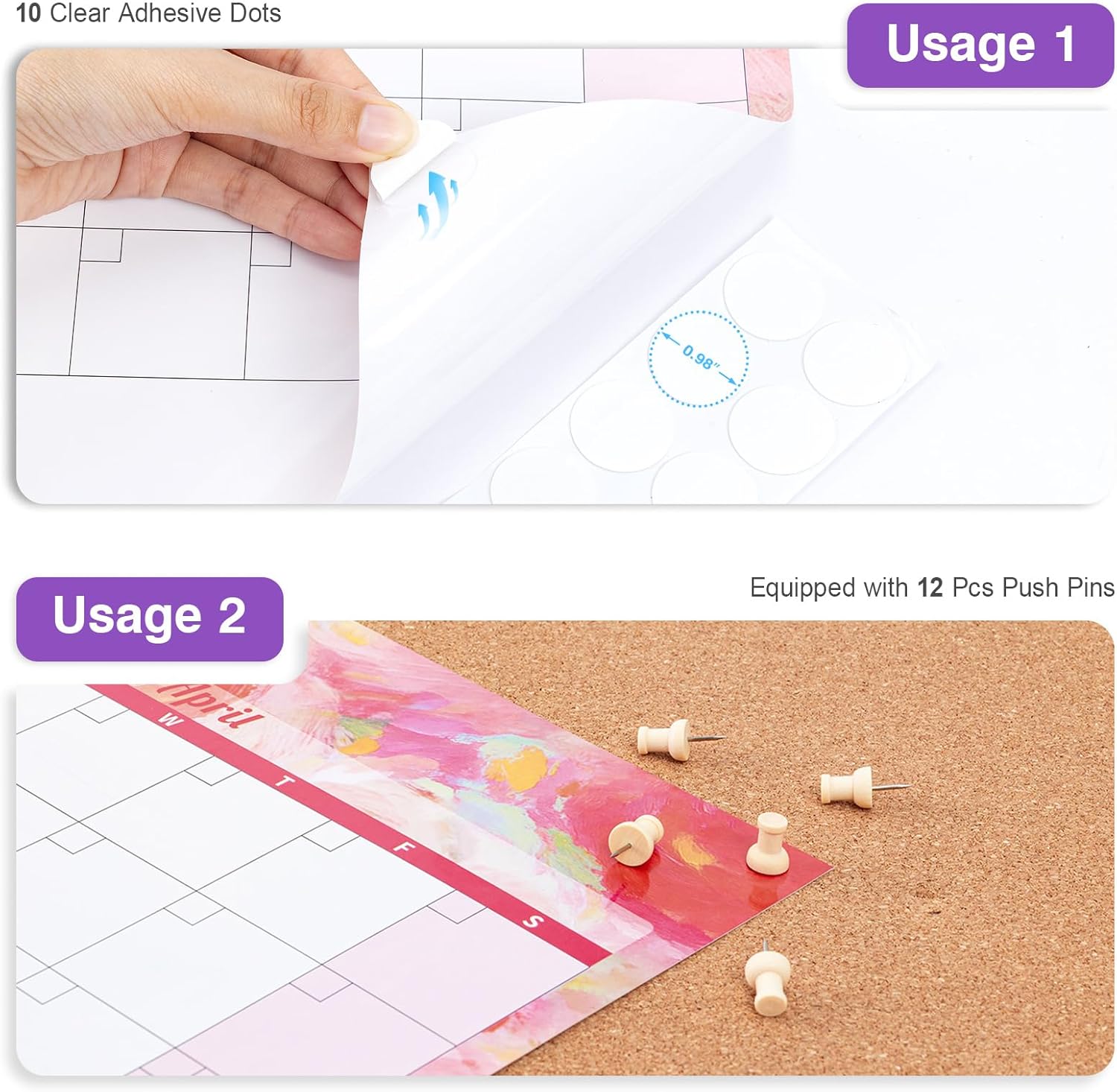 - ✨ 36.6" x 48" Large Calendar: Calendar planner that is easy to hang using transparent adhesive stickers and push pins, and is easy to clean. Monthly calendar keeps you organized and on top of things, even during the busiest and most hectic times of your life.