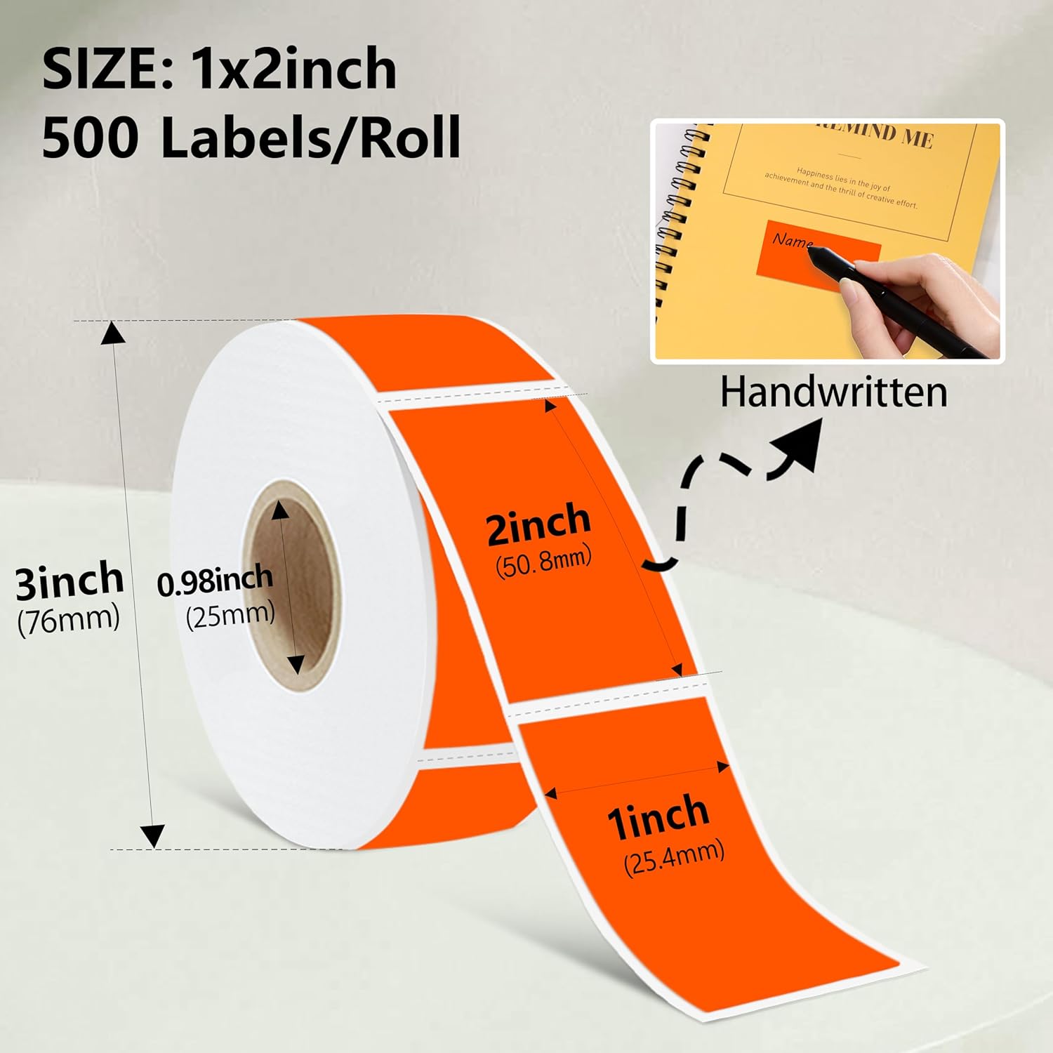 1x2 inch Label Stickers Roll for Thermal Printer 500PCS Colored Removable Freezer Labels Waterproof Blank Sticker Labels to Write on for Food Containers and Jars, Fluorescent Orange