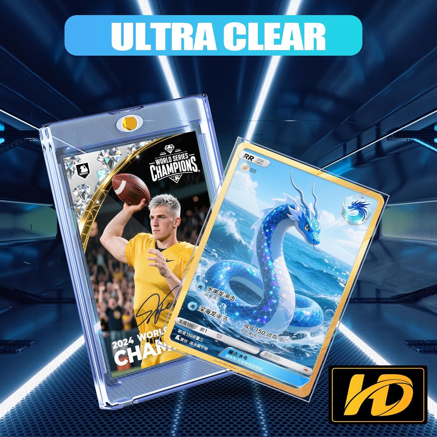 - Transparent Card Sleeves: Made of crystal clear PP material, thin yet durable, It allows for easy viewing of the cards without removing them from the protective sleeves. The transparent acrylic magnetic card holder enhances protection and display for your most valuable card. your cards will be displayed clearly in the card sleeves, convenient for you to insert and take out your trading cards.