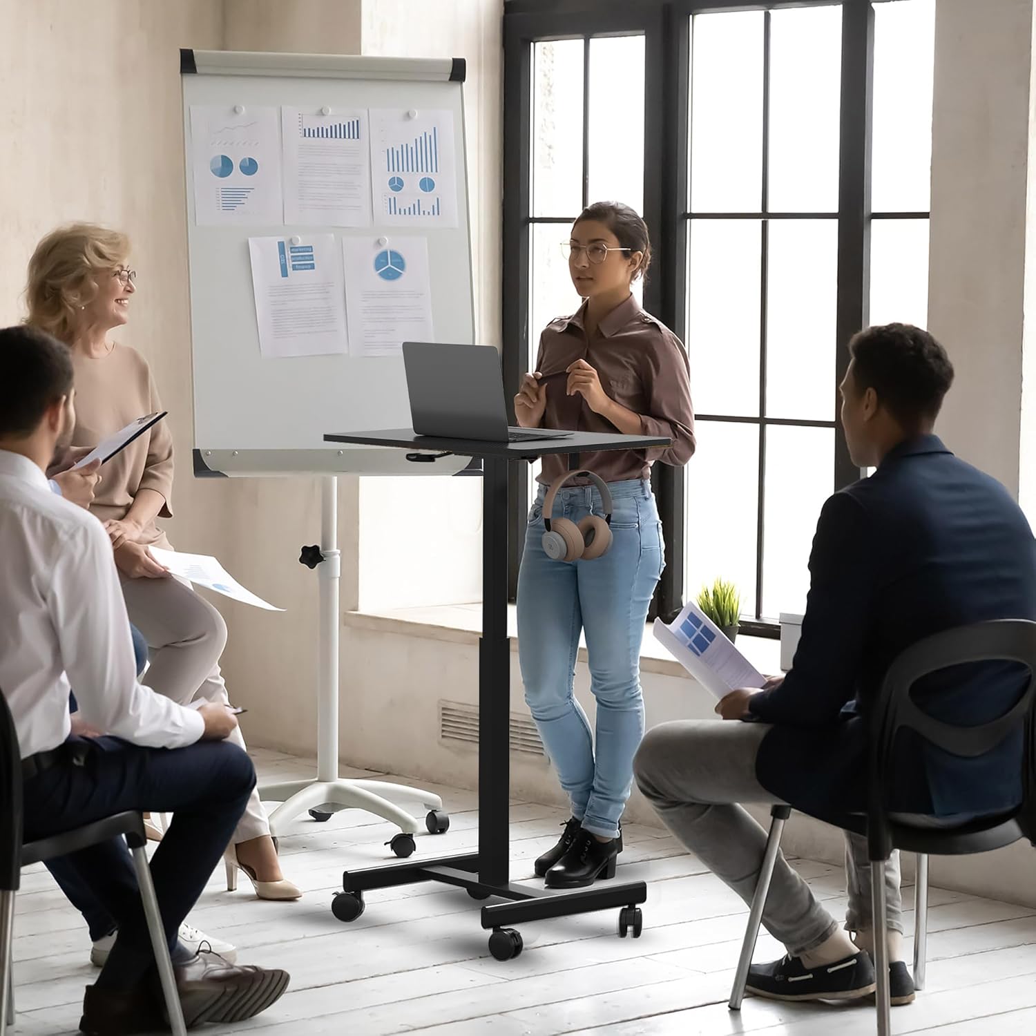 - 【Rolling Desk Adjustable Height】The height of this portable rolling computer desk can stay at any height between 28.5''-42.5'', you can switch between sitting and standing modes at will by the pneumatic adjustment.