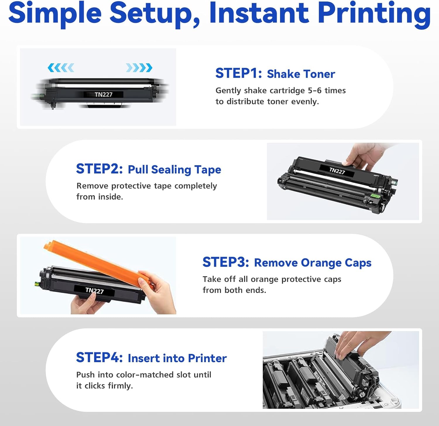 TN227 TN-227 Toner Cartridges 4Pack HL-L3210CW HL-L3270CDW HL-L3230CDW Compatible for Brother TN227 Toner Cartridges Combo Pack Compatible for HL-L3290CDW MFC-L3710CW MFC-L3770CDW HL-L3230CDN Printer