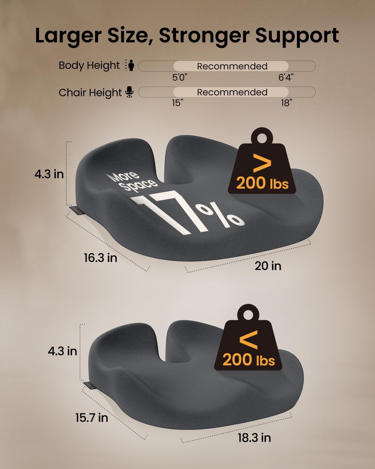 - Solution for Target People: Our upgraded extra-large seat cushion is tailored to meet the needs of individuals, providing a spacious and supportive seating solution designed to accommodate for weights exceeding 200 lbs with superior comfort and durability