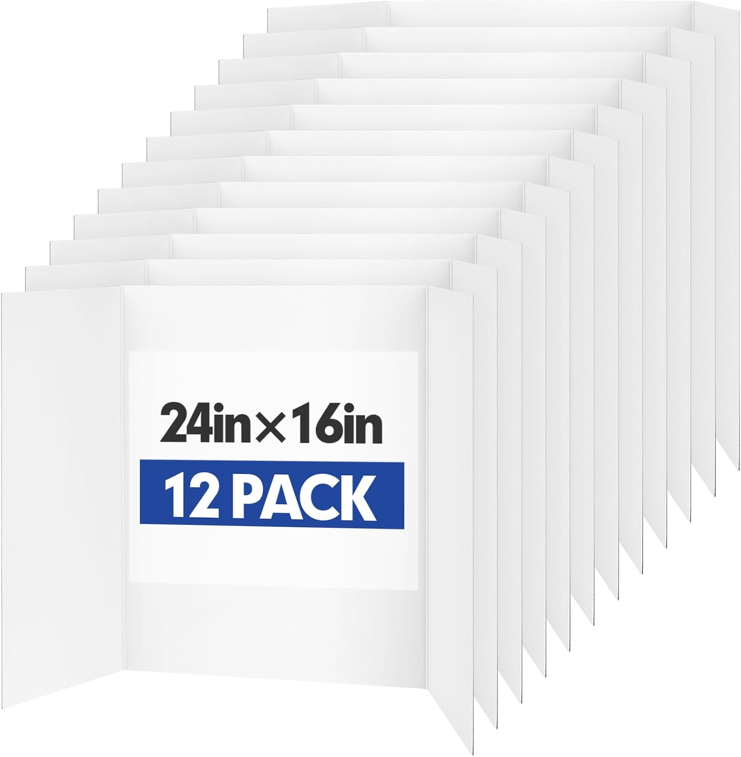 Trifold Poster Board,12 Pack 24" x 16" White Corrugated Poster Boards,Display Board,Perfect for School Projects, Science Fairs, Event Displays, and Business Presentations