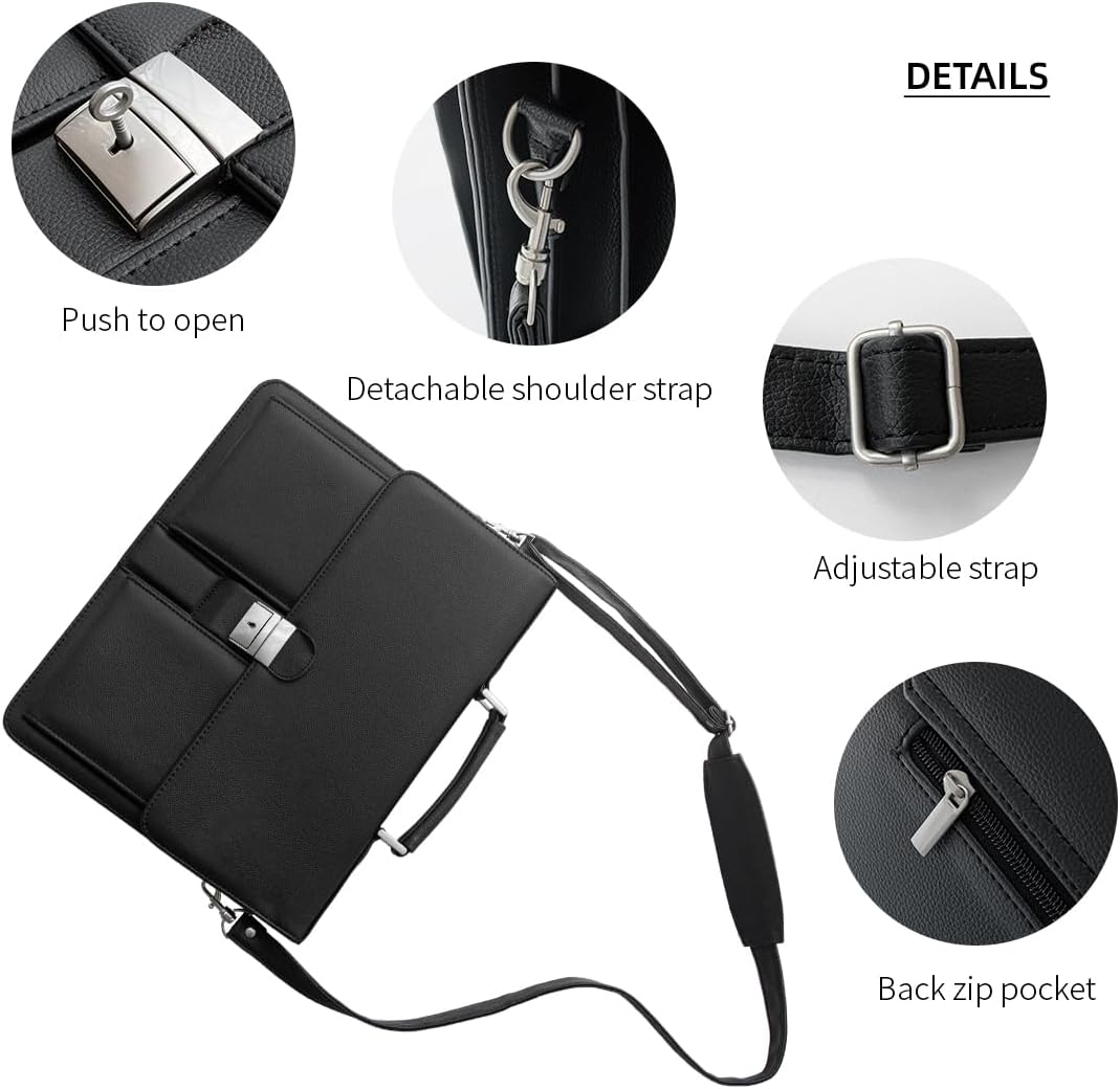 - Attache Case, the capacity is large enough to hold your daily essentials, like paper work, pens, laptop & Pad, books & magazines, cellphone, power bank, cards, and so on;