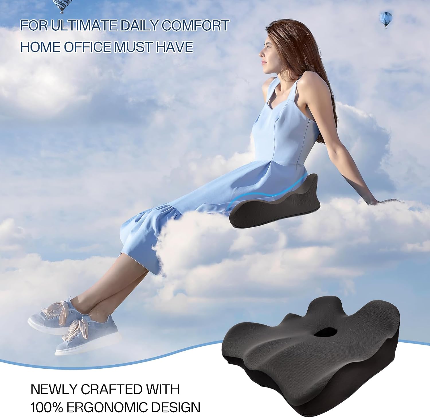 Seat Cushion, X-Large Memory Foam Office Chair Cushion, for Pressure Relief Sciatica & Pain Relief for Long Sitting Hours on Office/Home Chair, Car (Grey)