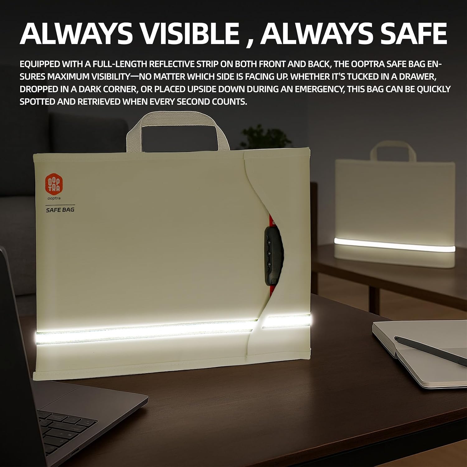 - 【Advanced 11-Layer Fireproof, Waterproof & Reflective Design】 Built with a new 11-layer fire-resistant structure and silicone-coated fiberglass, each bag offers enhanced protection—resisting heat up to 4200°F (short-term) while keeping out water, moisture, and smoke. The waterproof zipper further seals your valuables, and a full-length reflective strip ensures visibility in low light or emergencies.