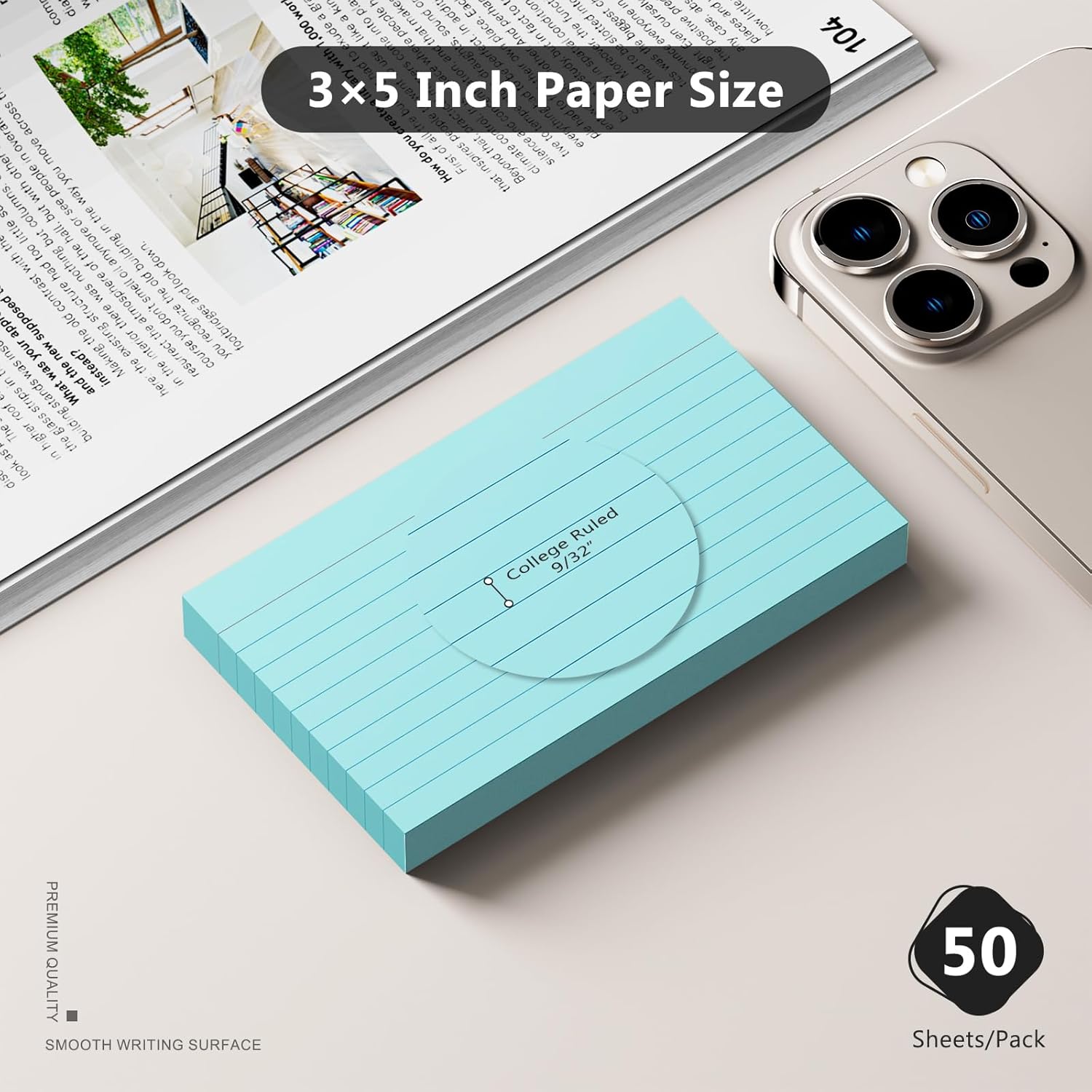 - Smooth Writing Experience: The thick lined index card is sturdy, with a smooth surface, and compatible with all kinds of writing instruments such as pencils, gel pens, felt-tip pen, rollball pen, markers and highlighters, ensuring that your notes and ideas stay clear and easy to read