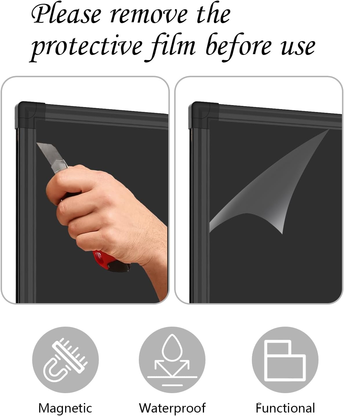 - Premium Magnetic Chalkboard:Experience the perfect blend of functionality and style with XBoard Premium Magnetic Chalkboard. Featuring a sleek black surface, it offers a high-contrast display for enhanced visibility and readability. The versatile magnetic surface serves as an ideal bulletin board for showcasing travel magnets, messages, pictures, memos, calendars, and more.