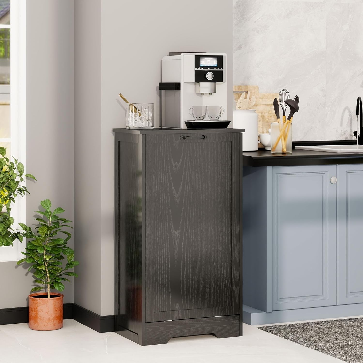 - Multifunctional Hidden Kitchen Cabinets:This black dog proof trash can works perfectly in kitchens, laundry rooms, bathrooms, and more. Beyond storing trash, it offers practical versatility—serving as storage for pet food, cleaning supplies, or small items. Its spacious top easily holds coffee makers, decor, or everyday essentials, keeping your space tidy while saving room.