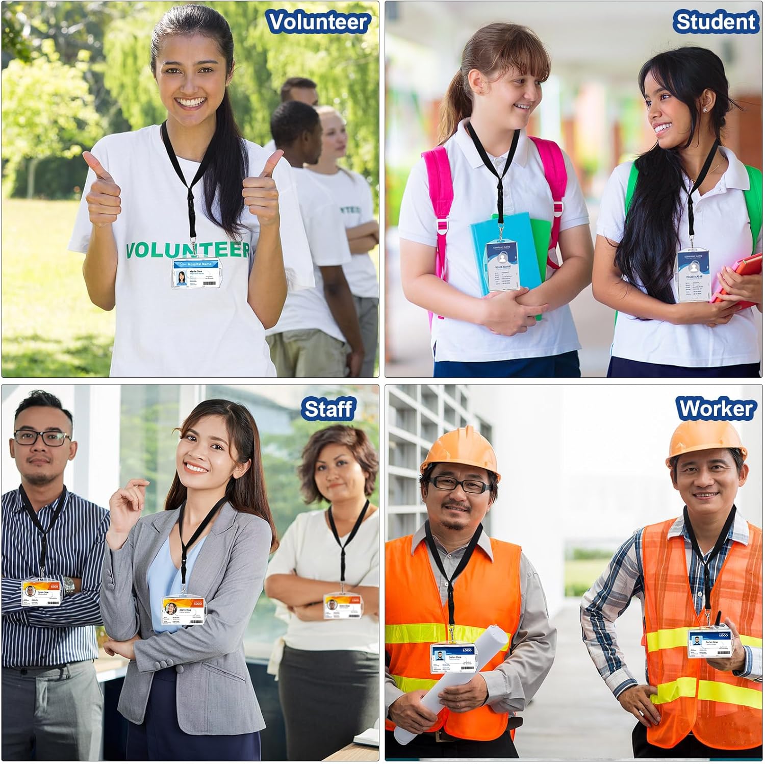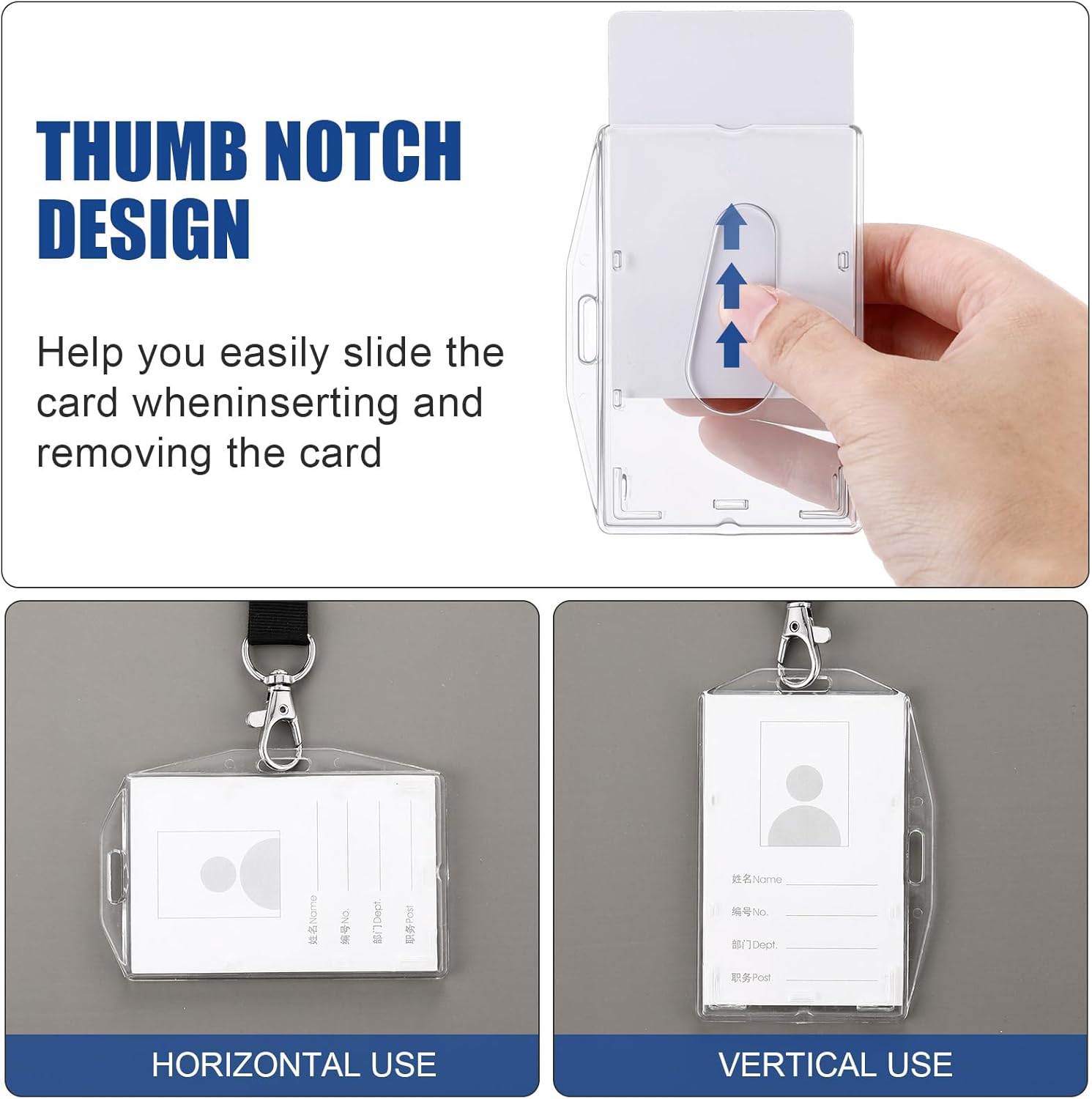 - Reliable material: transparent polycarbonate material, reliable and not easy to break; Built solid and sturdy for daily use; The vertical and horizontal ID badge holder is clear; You can see the card clearly; The full sleeve back side guards the card and photo from scratching or wear and tear, can be applied for a long time
