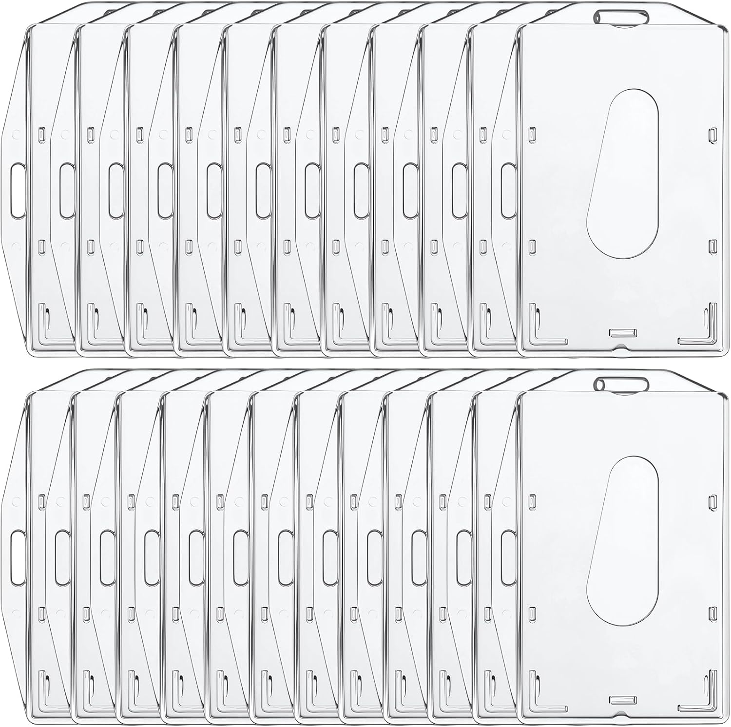 Marspark 25 Pcs 2 ID Badge Holder Heavy Duty Plastic ID Card Holder Transparent Protector Clear Badge Protector Cover Sleeve Protective Cover with Thumb Slot for Credit Card (Vertical and Horizontal)
