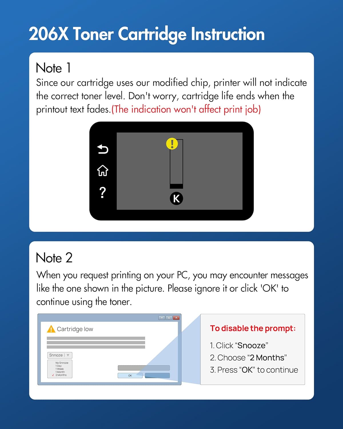 - 1. WITH CHIP : 206X Black Toner cartridge Replacement for 206X Black Toner Cartridges is already WITH CHIP which HELP you get away from the difficult problem—transfer the OEM chip to 206x toner cartridge