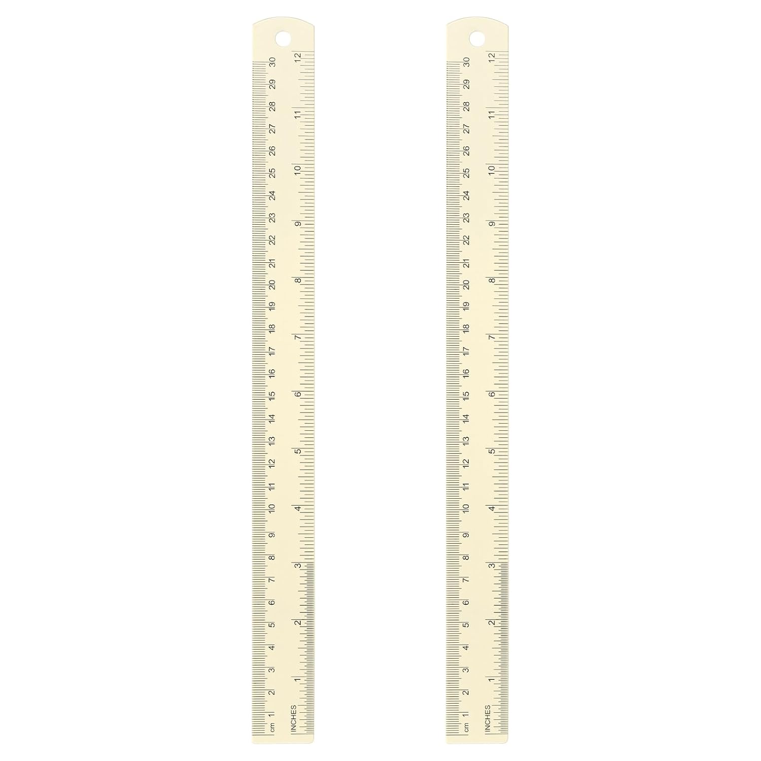HARFINGTON 2pcs Metal Straight Ruler 30cm Metric SAE Aluminum Alloy Measuring Rulers Scale Tool with Hole for Measure Study Reading Classroom Office, White