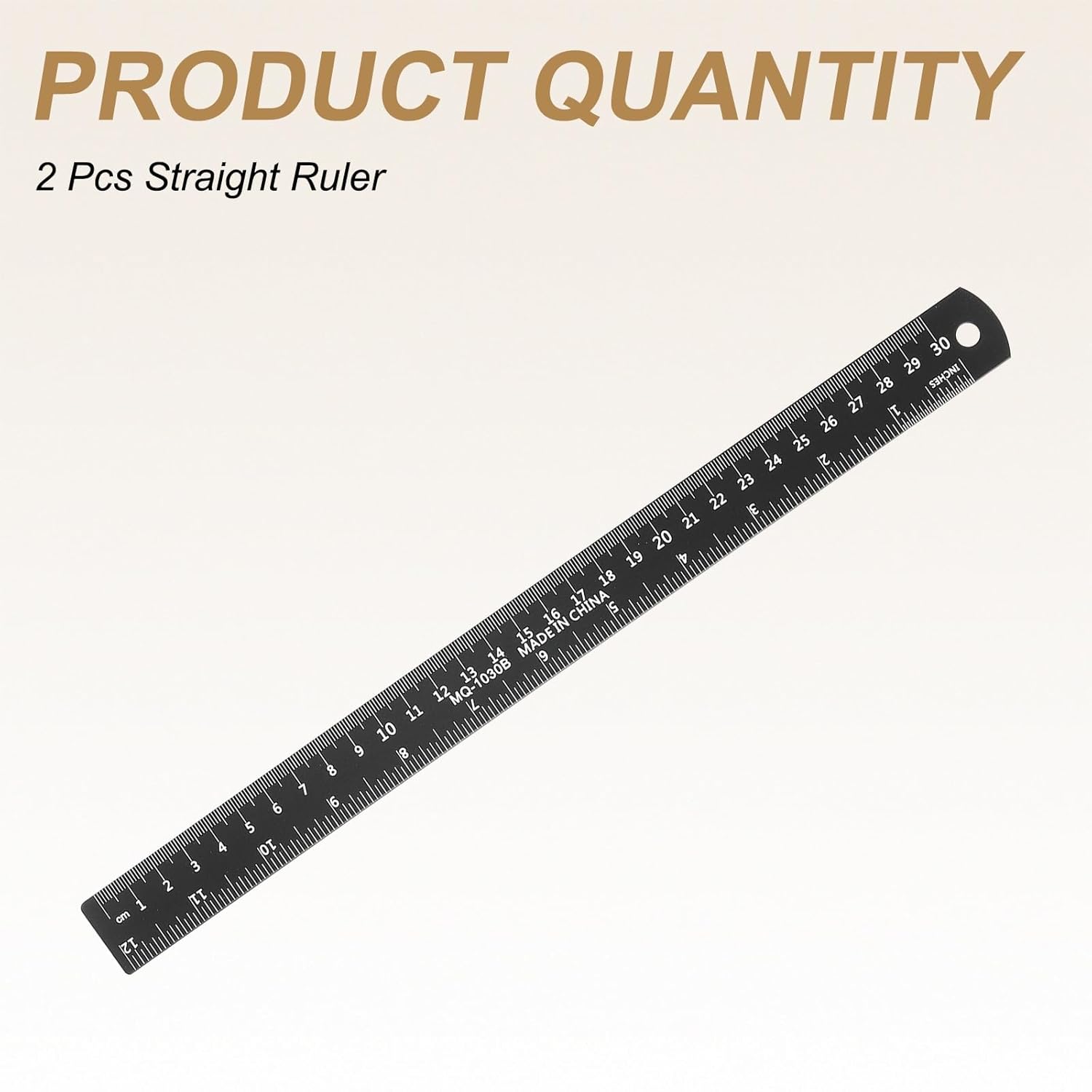 HARFINGTON 2pcs Metal Straight Ruler 30cm Metric SAE Aluminum Alloy Measuring Rulers Scale Tool with Hole for Measure Study Reading Classroom Office, Black