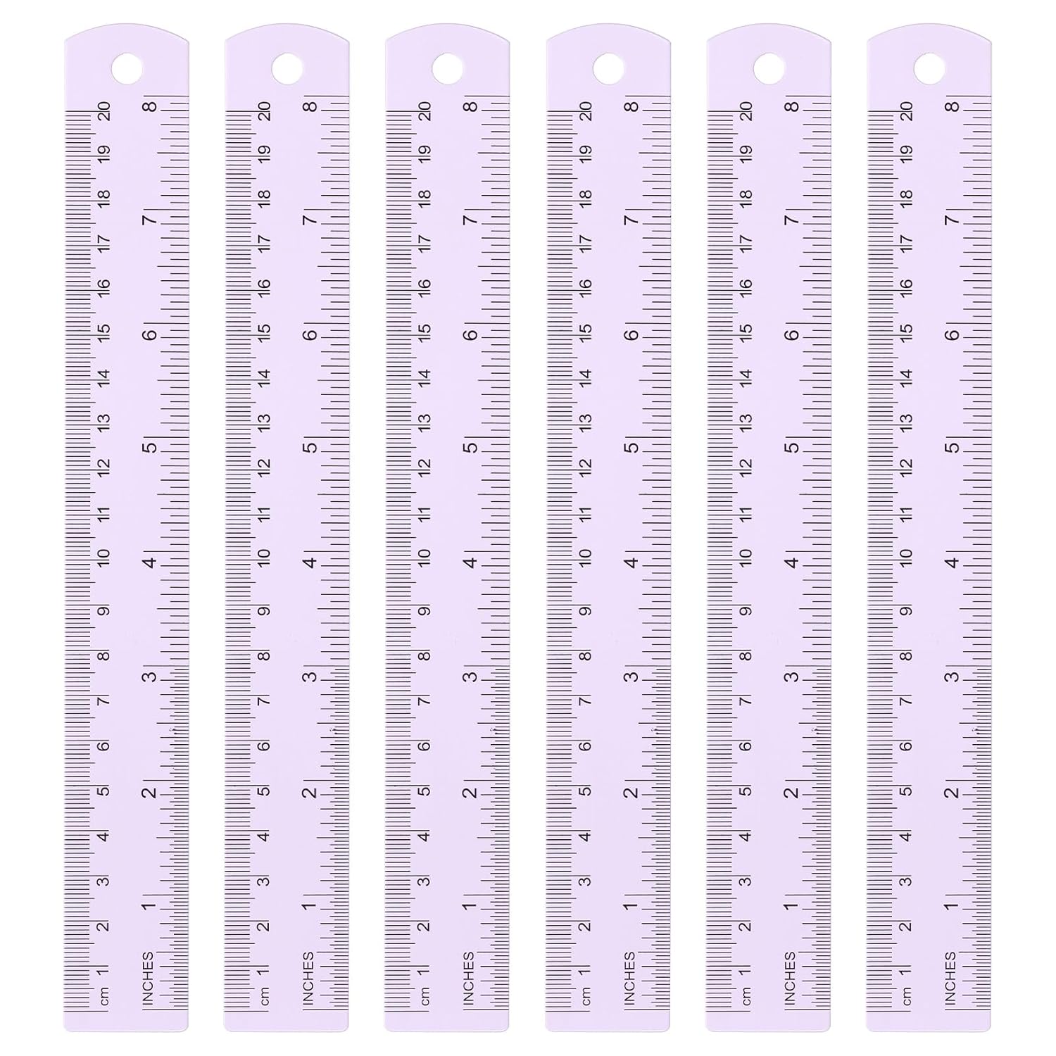 HARFINGTON 6pcs Metal Straight Ruler 20cm Metric SAE Aluminum Alloy Measuring Rulers Scale Tool with Hole for Measure Study Reading Classroom Office, Purple