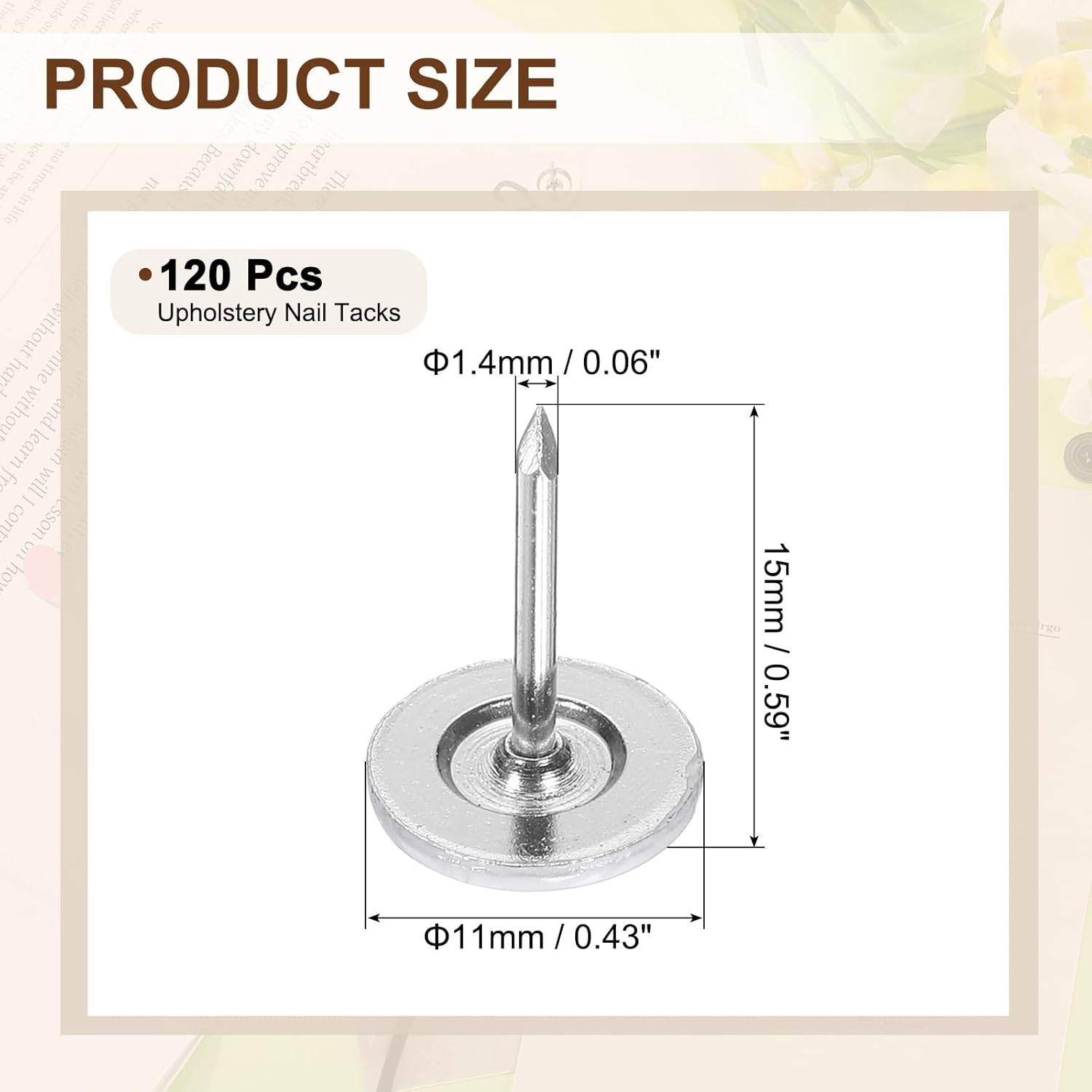 - [Size & Quantity] - The package comes with 120pcs decorative upholstery tacks. Sufficient quantity to meet your different daily needs. The overall size of upholstery nails is about 11mm x 10mm/0.43-inch x 0.39-inch(D*H)