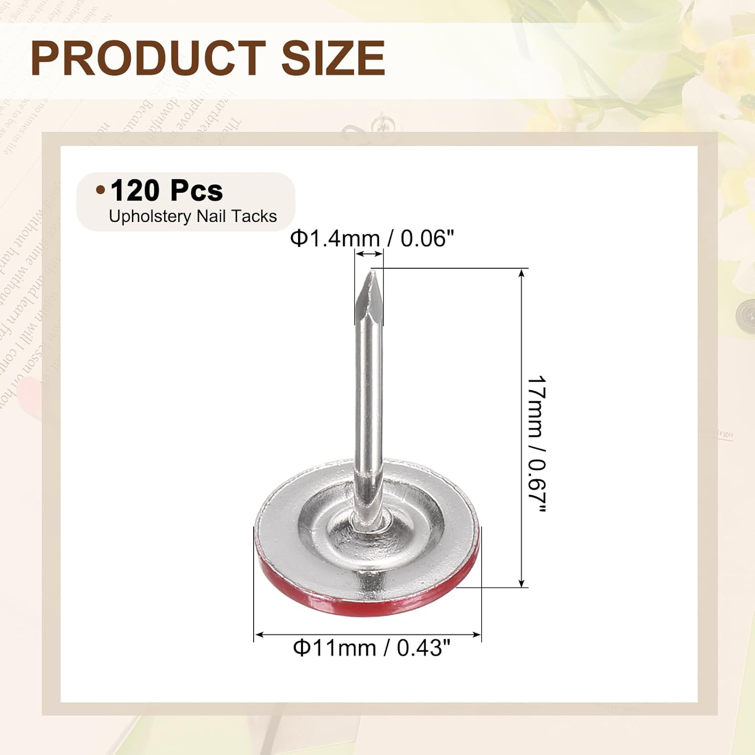 - [Size & Quantity] - The package comes with 120pcs decorative upholstery tacks. Sufficient quantity to meet your different daily needs. The overall size of upholstery nails is about 11mm x 17mm/0.43-inch x 0.67-inch(D*H)