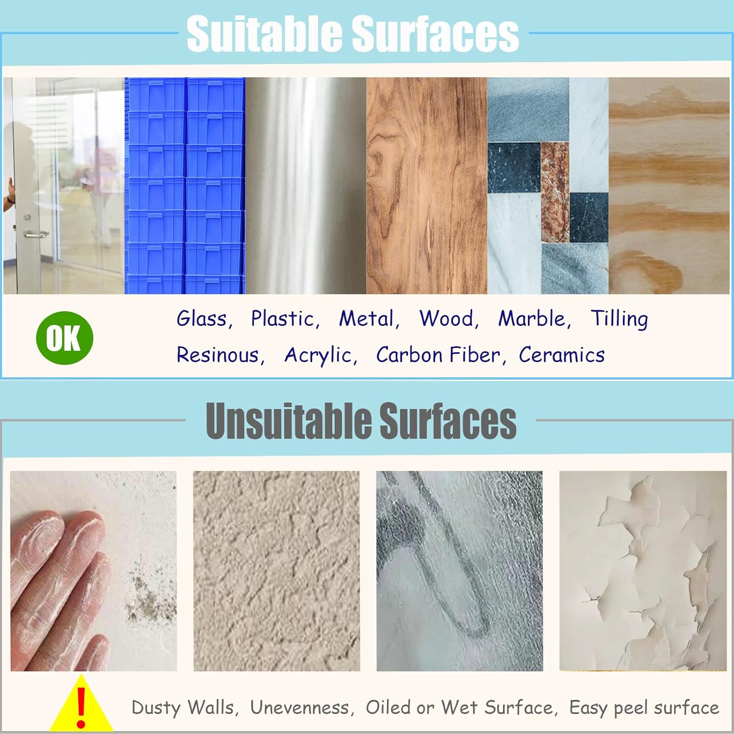 - 【REMOVABLE & TRACELESS】Removable mounting gel glue putty tape is made of high quality acrylic gel material that is flexible and durable. It can be easily removed or repositioned leaves no sticky residue and won't damage most surfaces upon removal such as glass, metal, plastic, marble, wood. No need to clean the mess like other kind of adhesive, totally renter friendly. Please Note:We don't suggest using it on the flimsy wall (Paint wall, Powder wall).