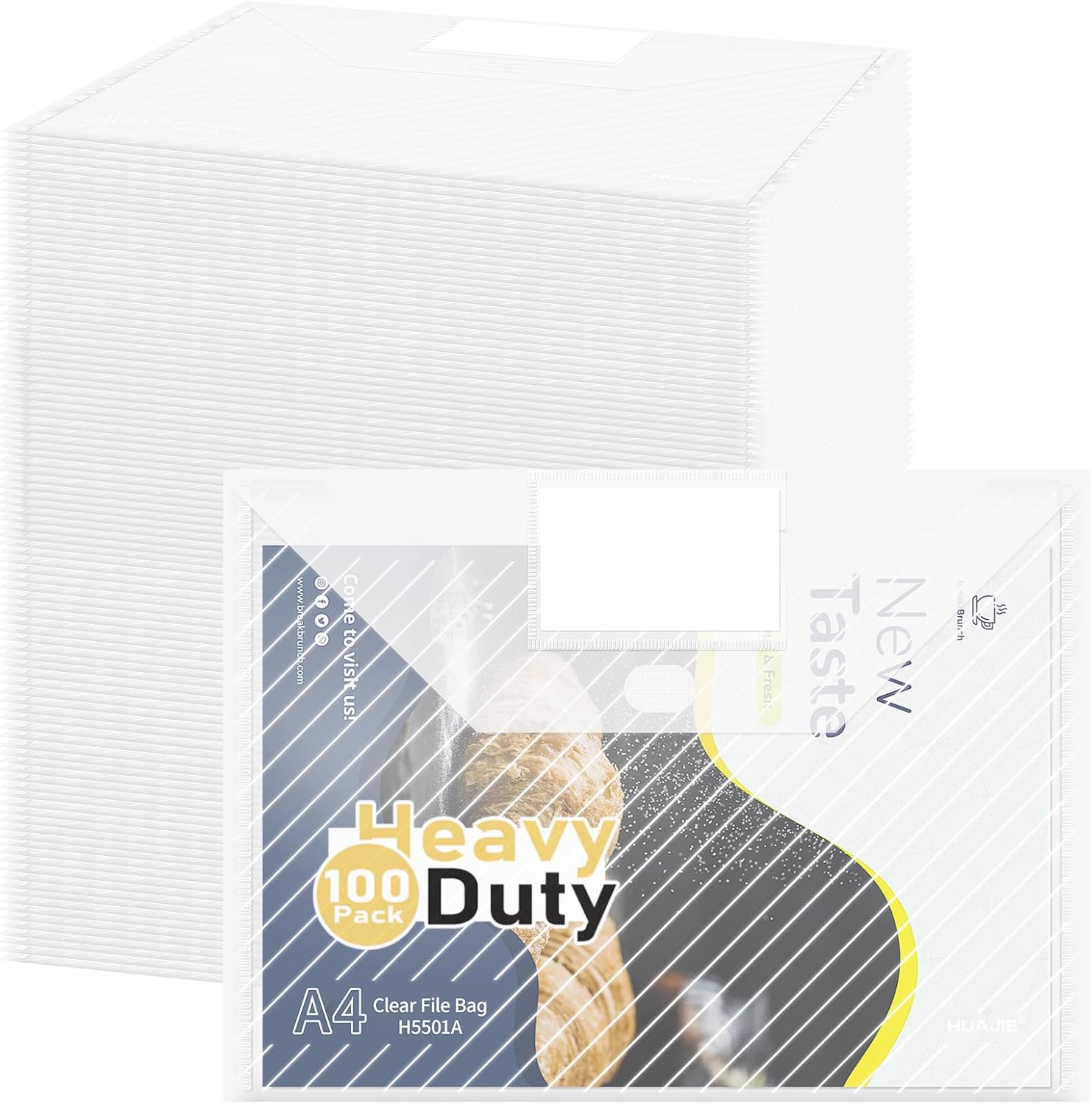 100 Pack, Clear Plastic Envelopes File Folders, HeavyDuty Document Holder with Label Pockets for Letter and A4 Size, Document Folder for School Home Work Office Organizer (100)
